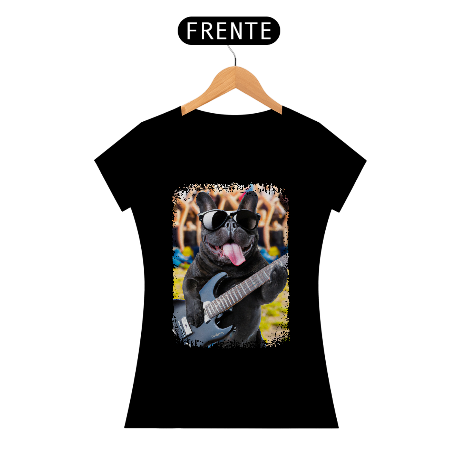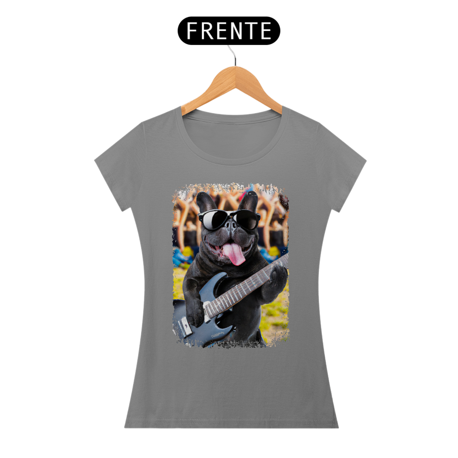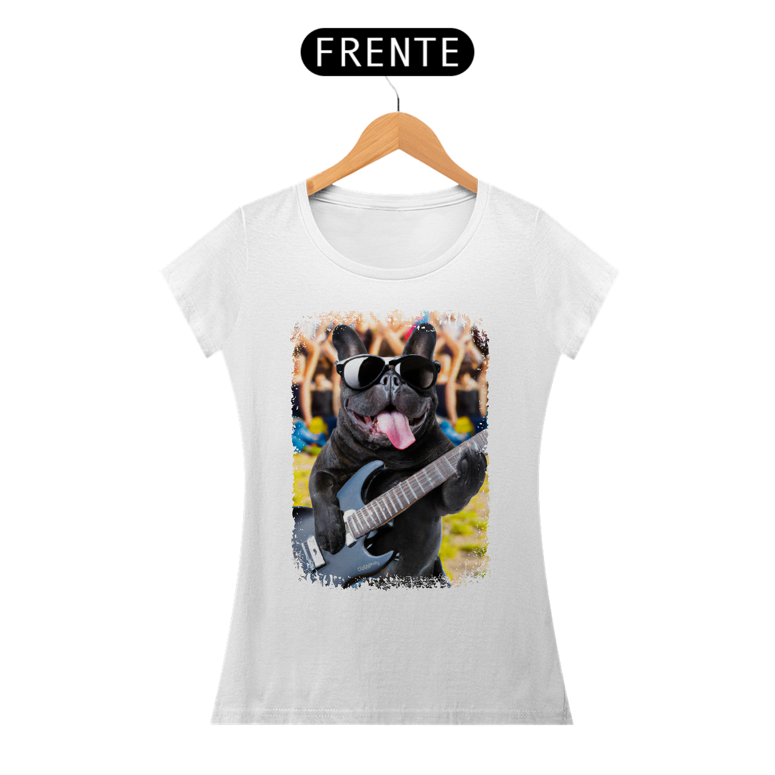Camiseta Feminina Bulldog Francês Tocando Guitarra