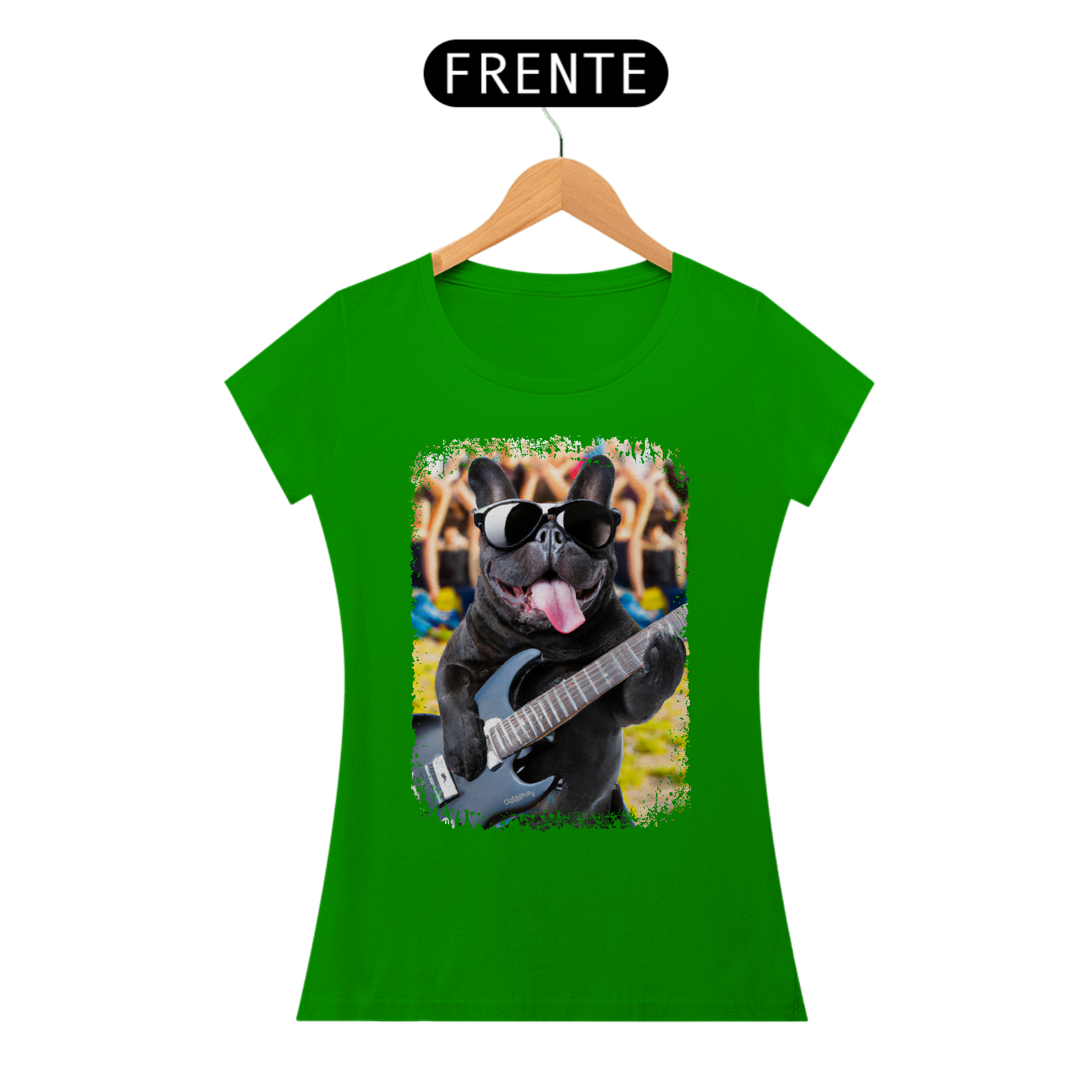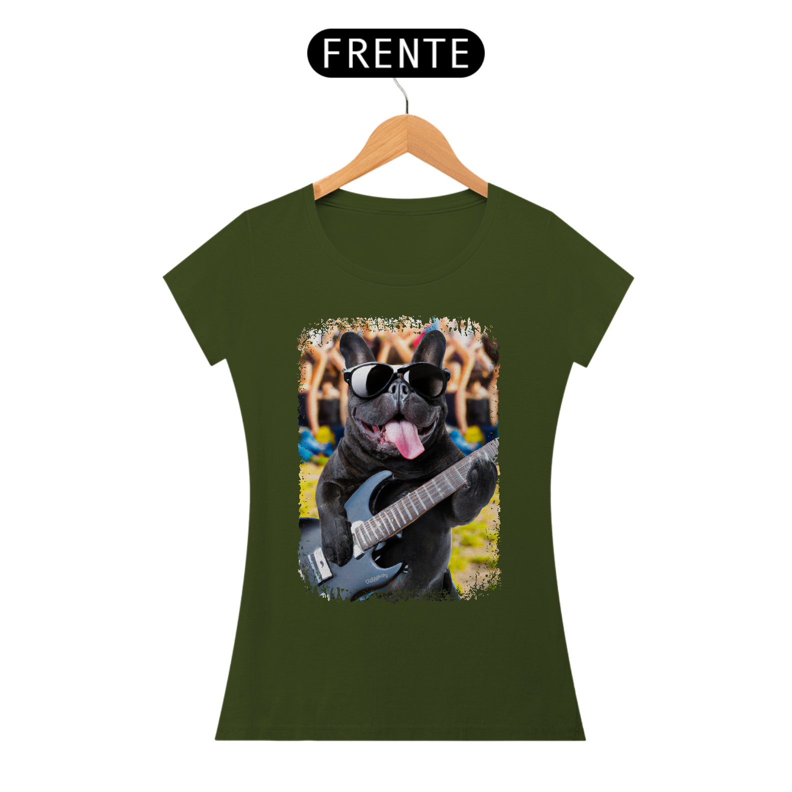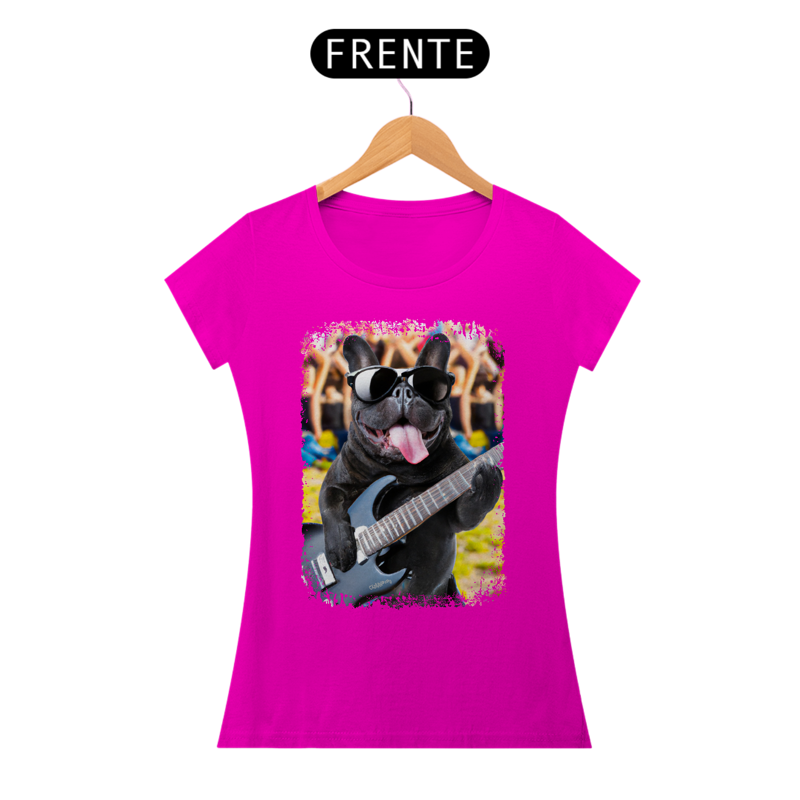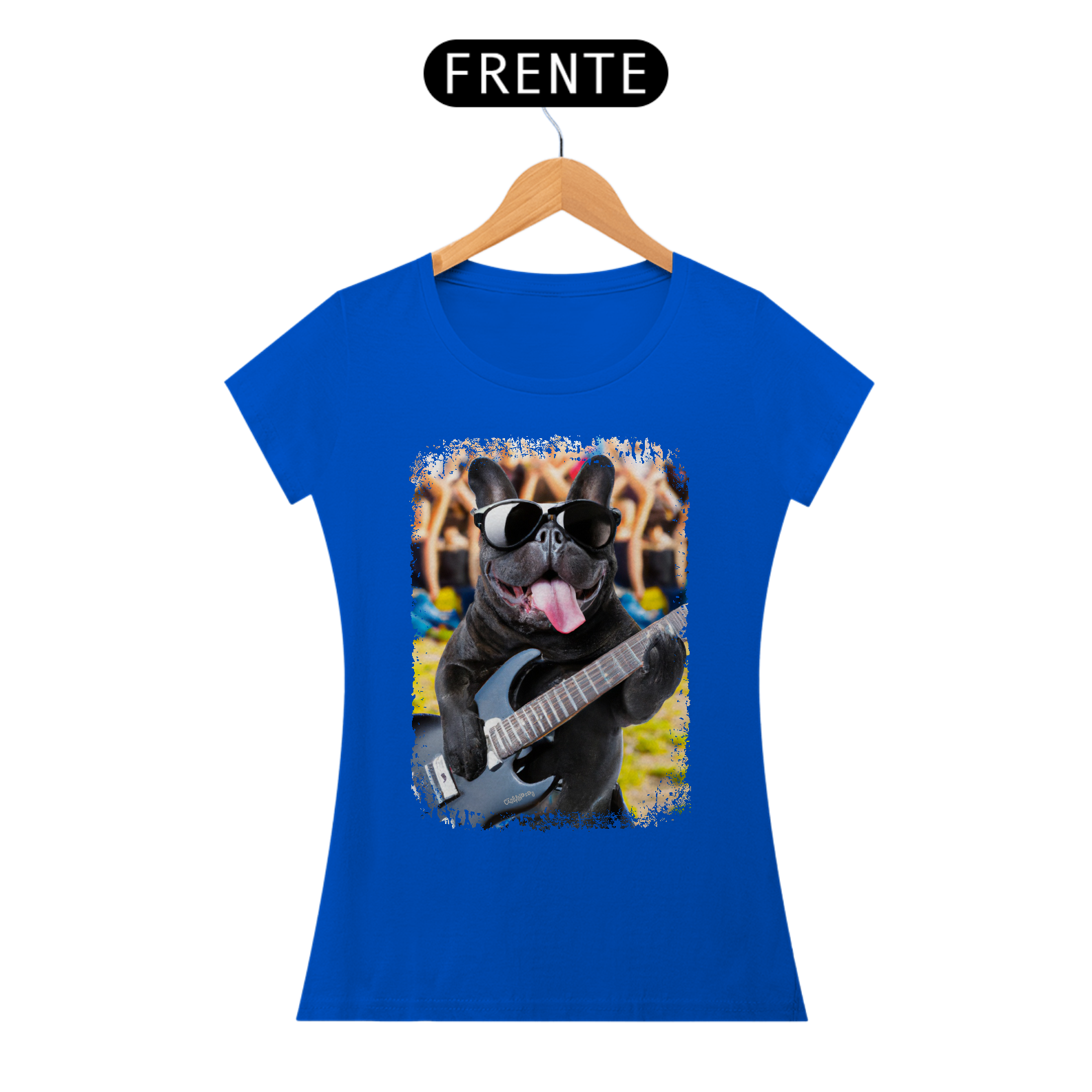 Camiseta Feminina Bulldog Francês Tocando Guitarra