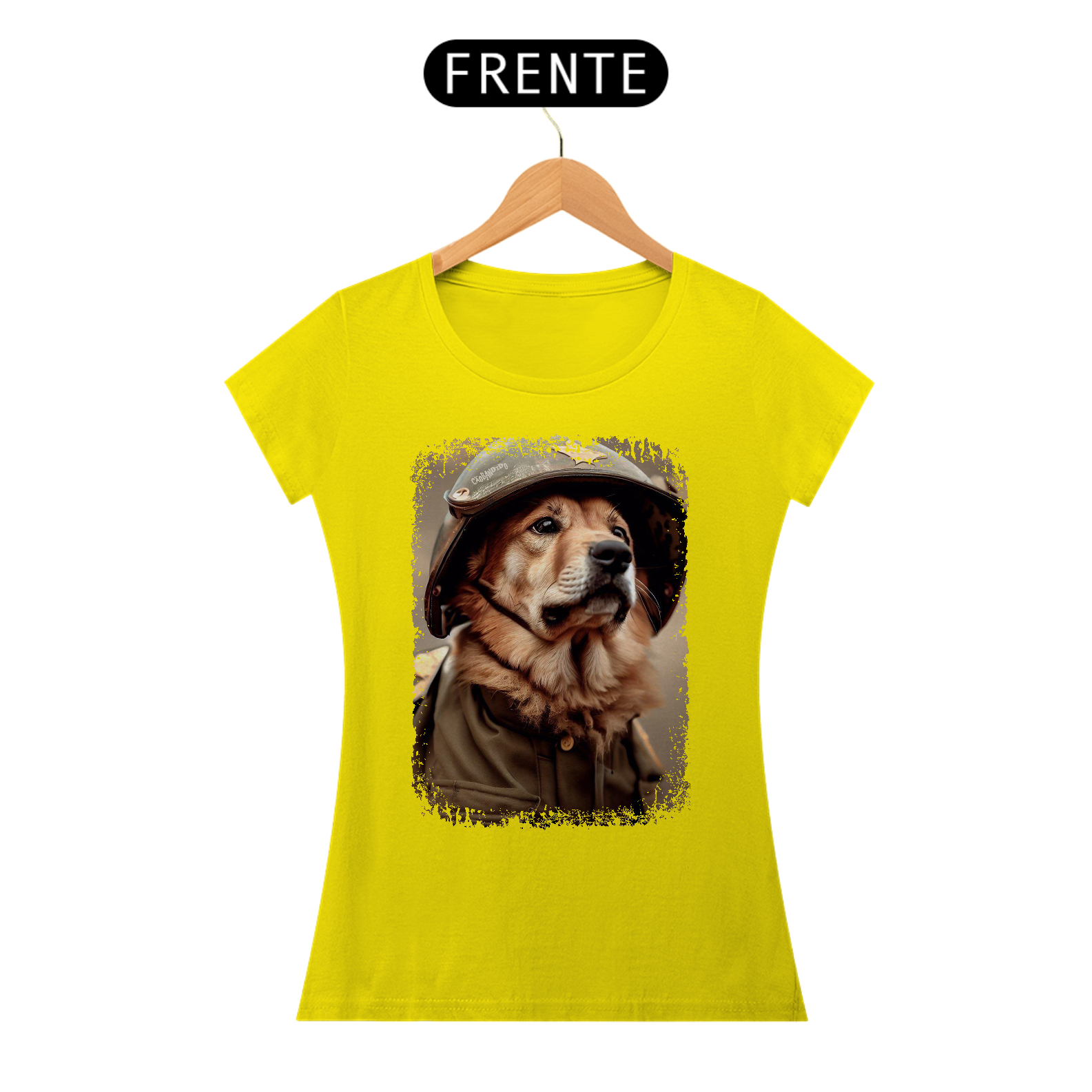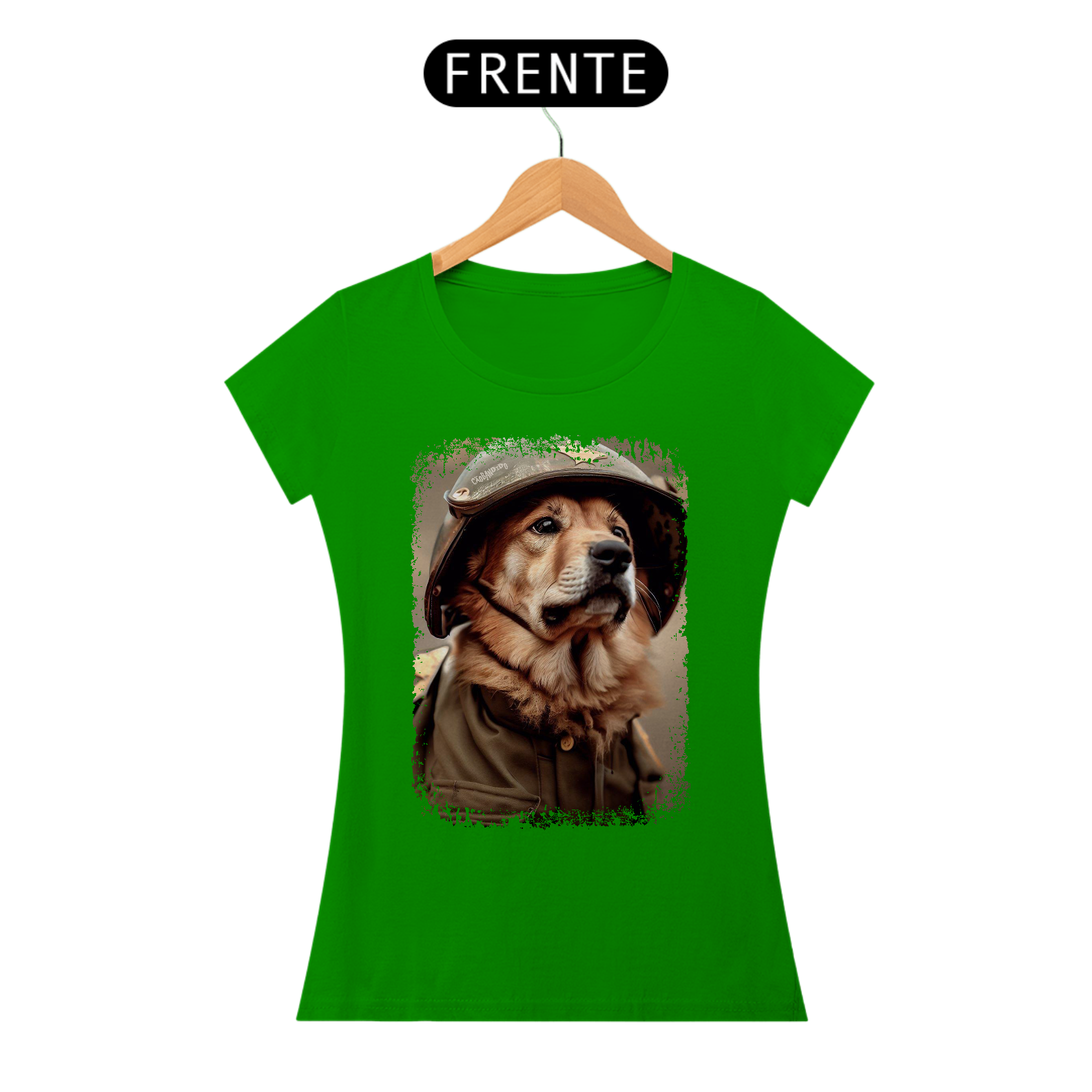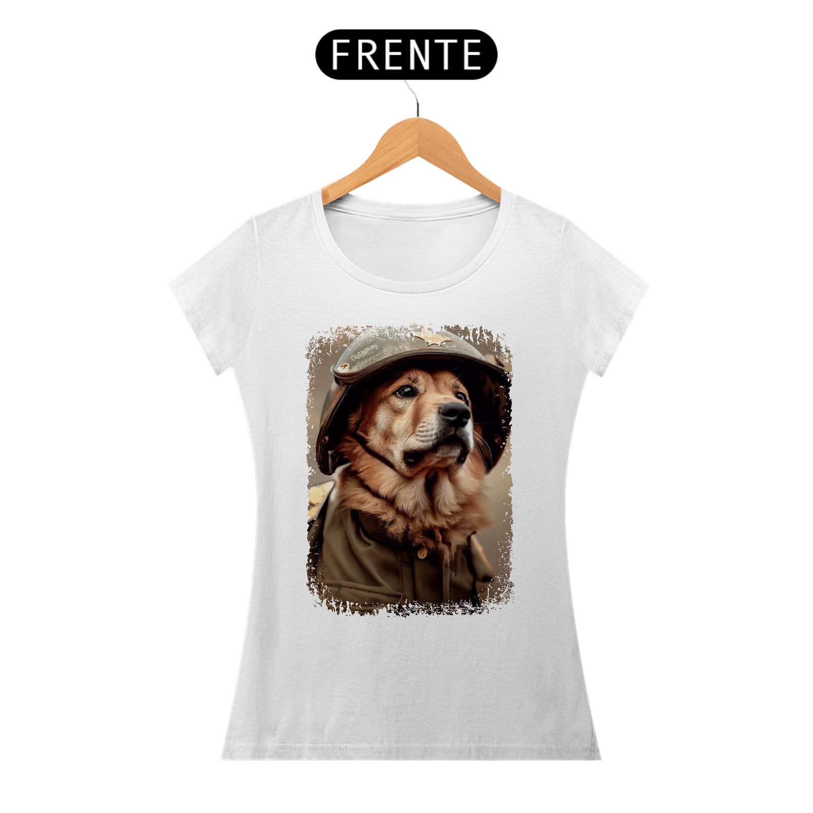Camiseta Feminina Cachorro Militar