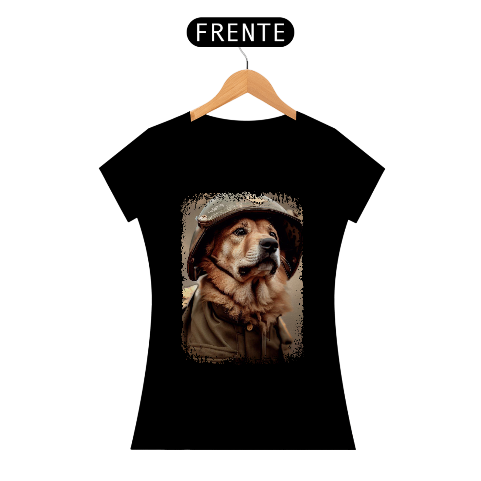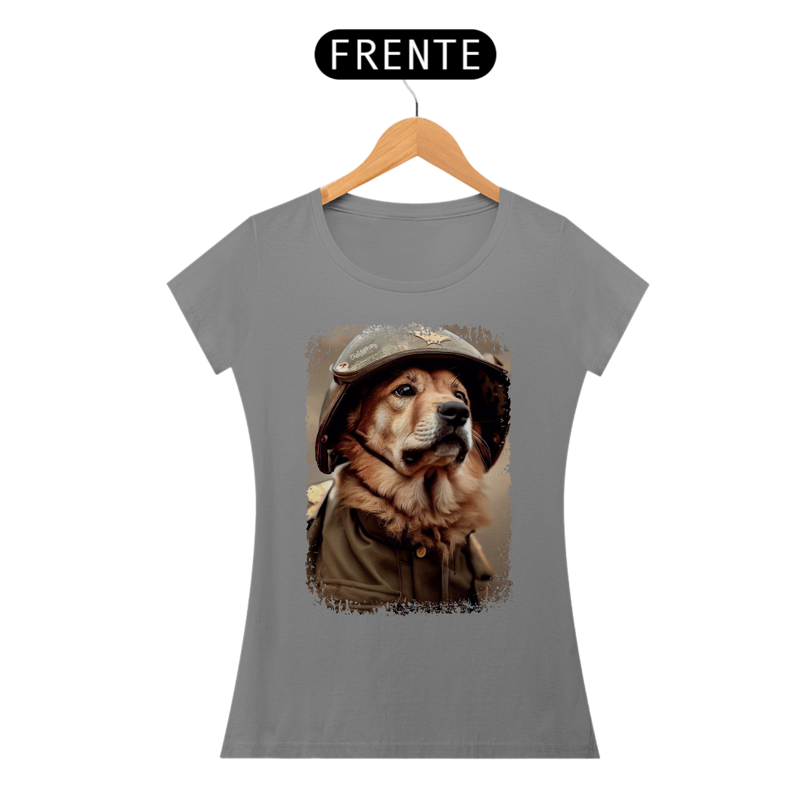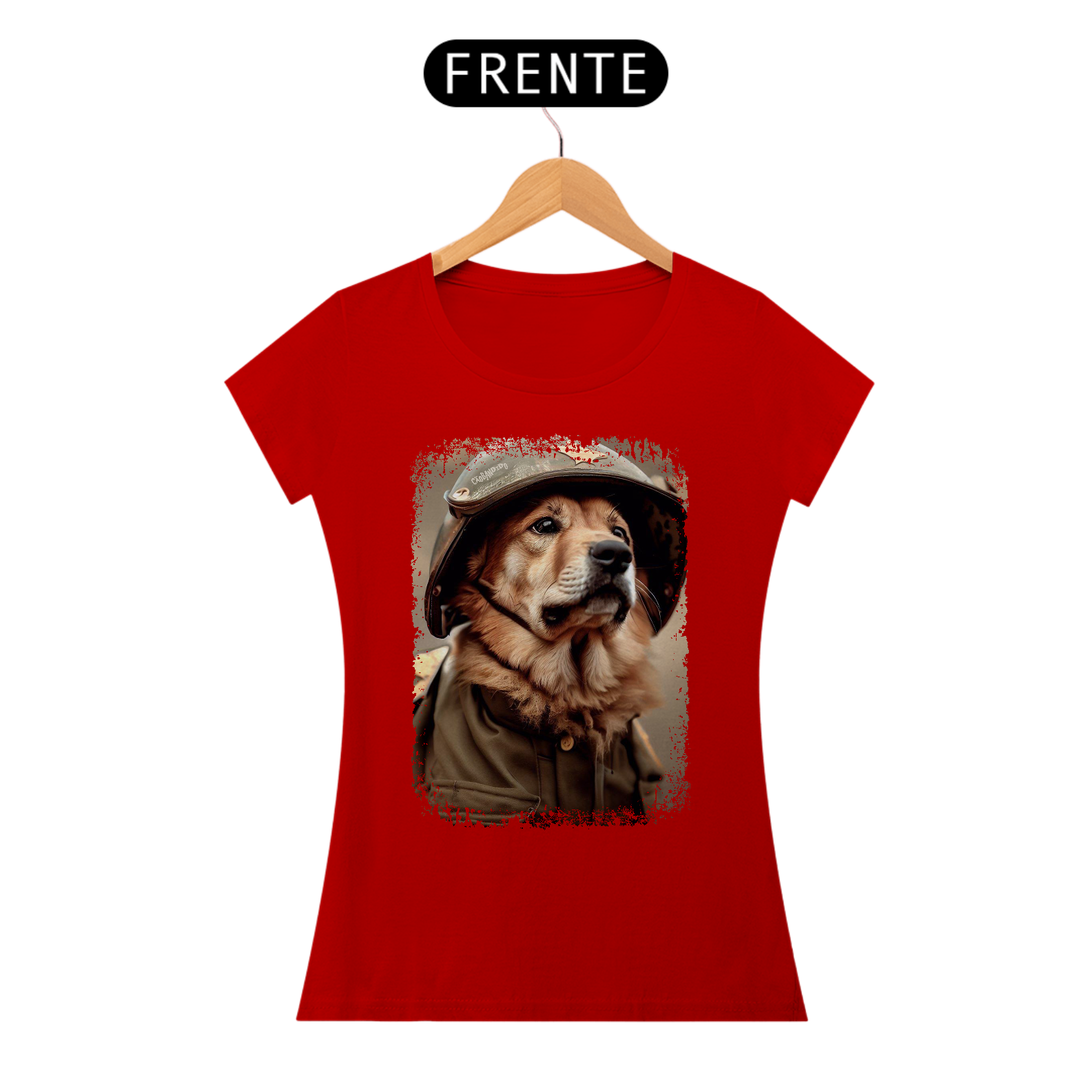 Camiseta Feminina Cachorro Militar