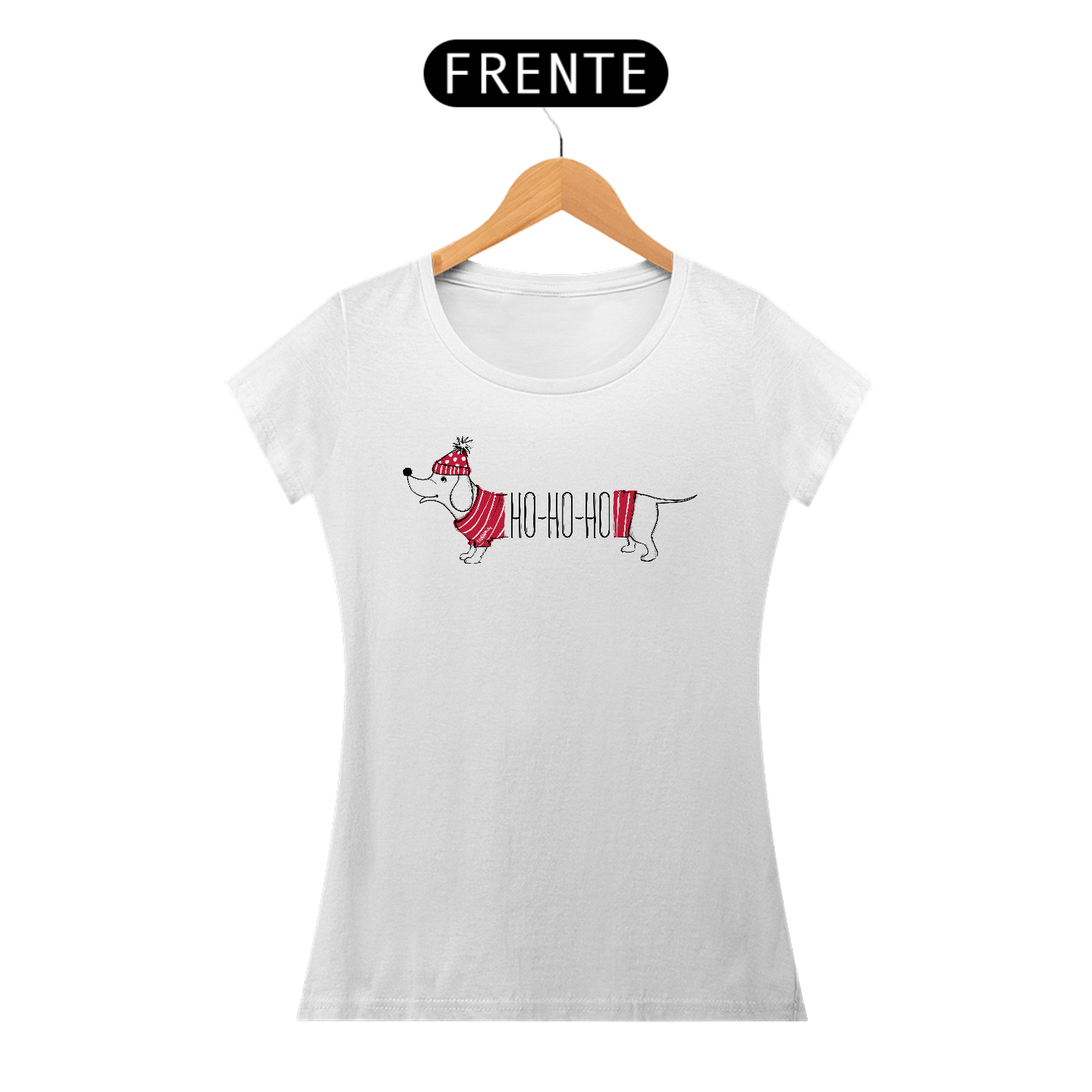 Camiseta Feminina Dachshund Natal Ho Ho Ho