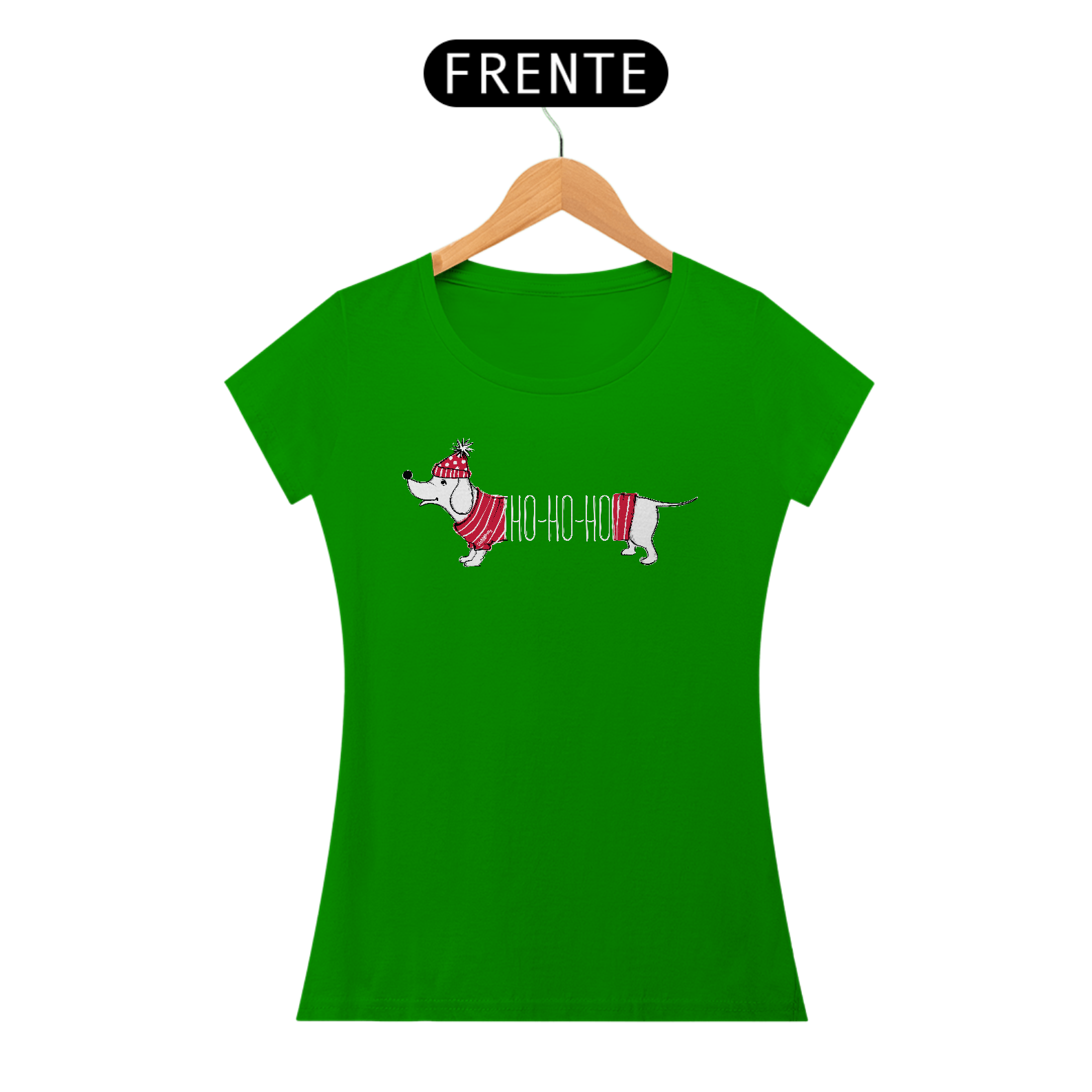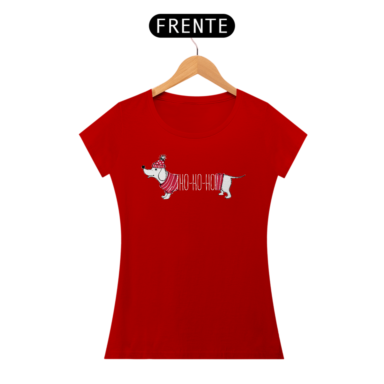 Camiseta Feminina Dachshund Natal Ho Ho Ho