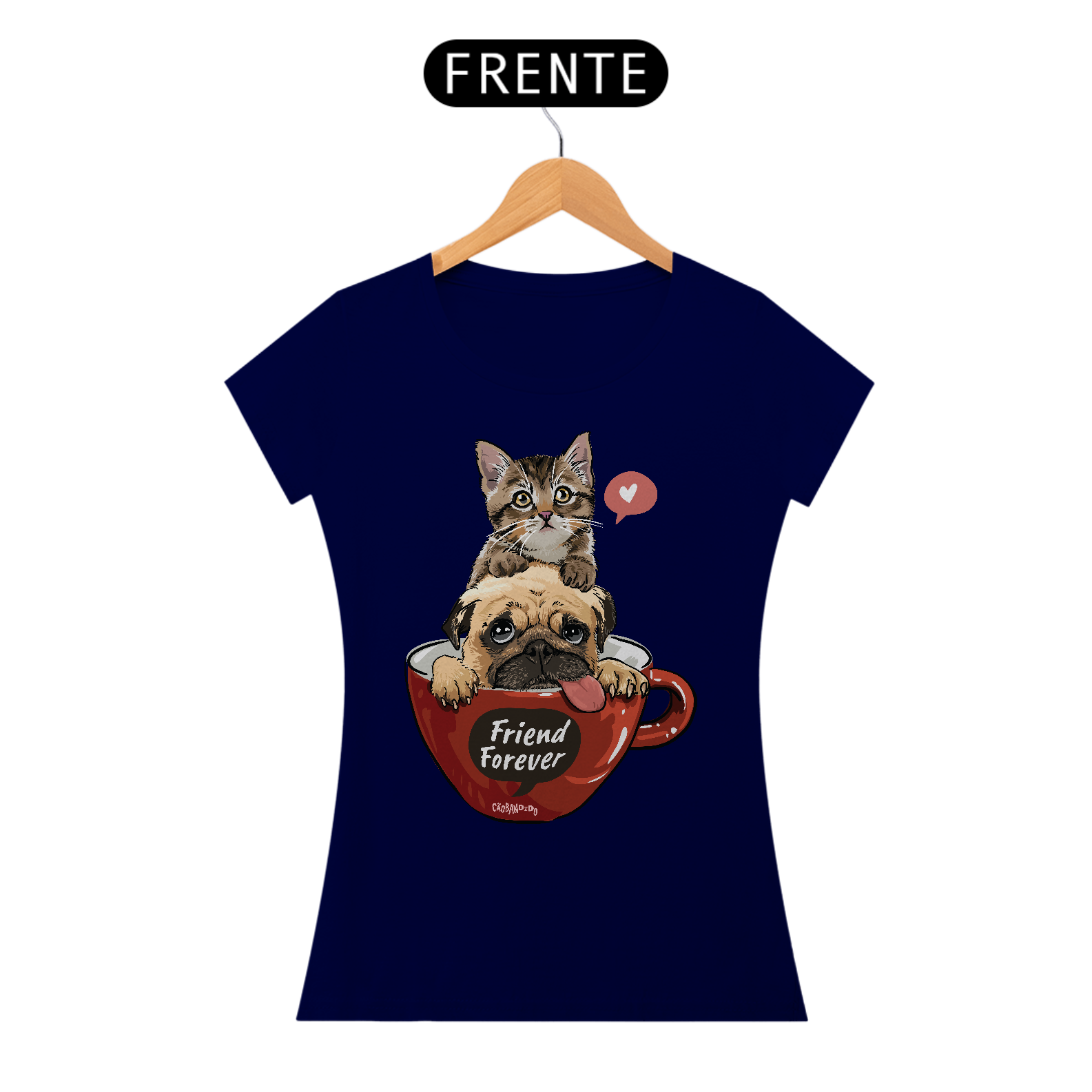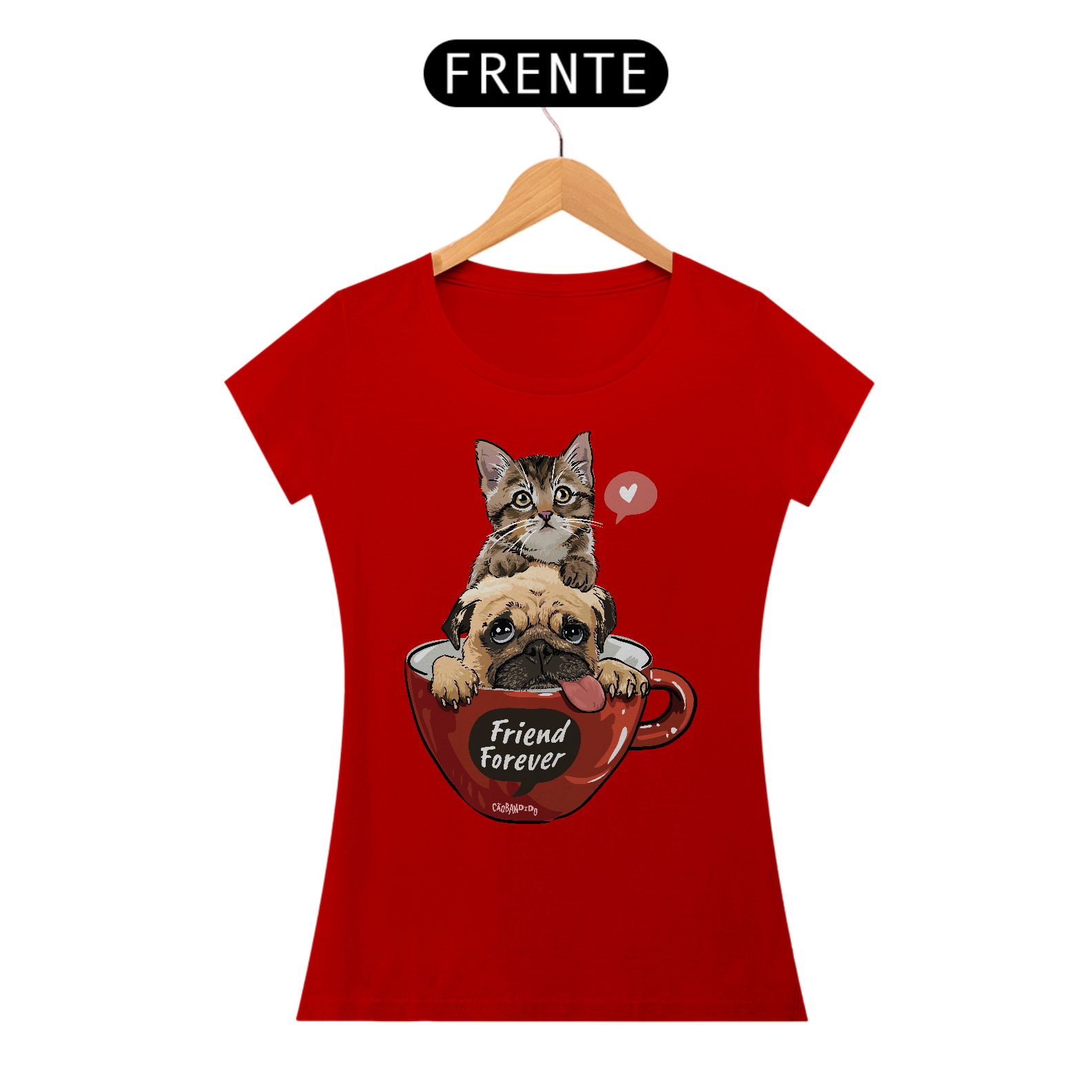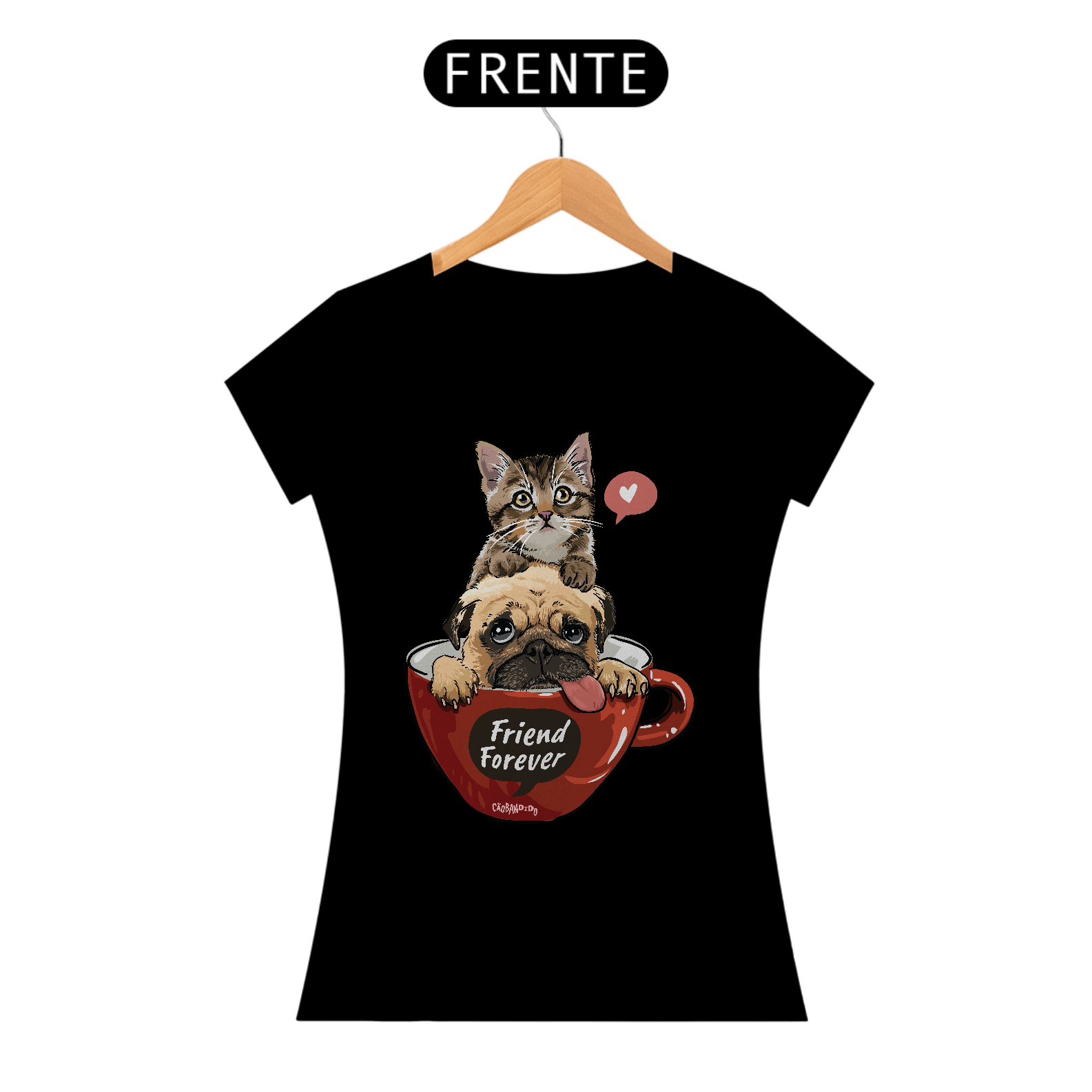 E se você é pai, ou mãe, de cachorro e de gato, vai amar a camiseta feminina Amigo para Sempre!