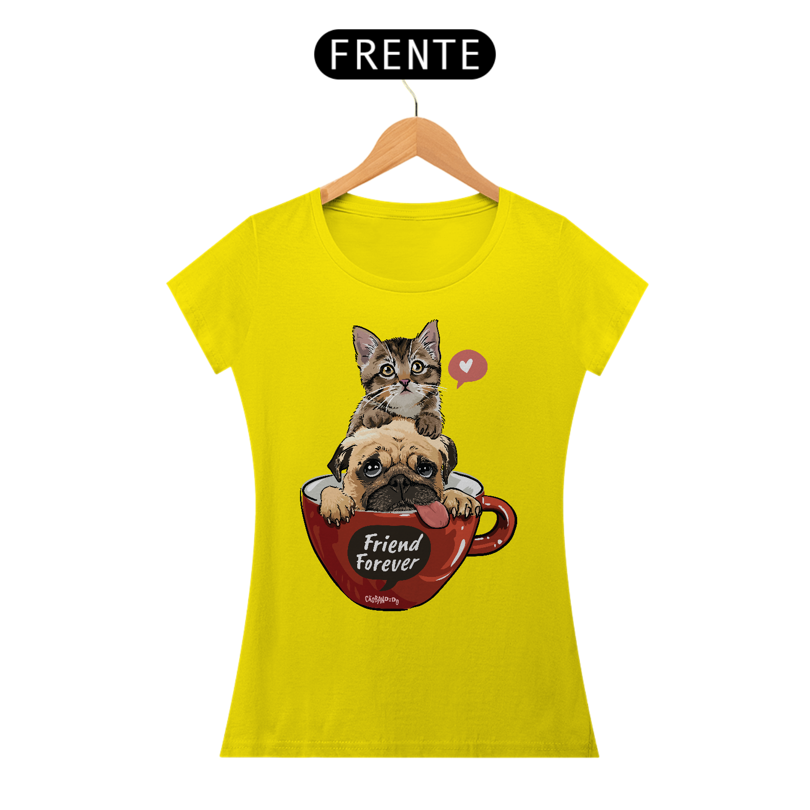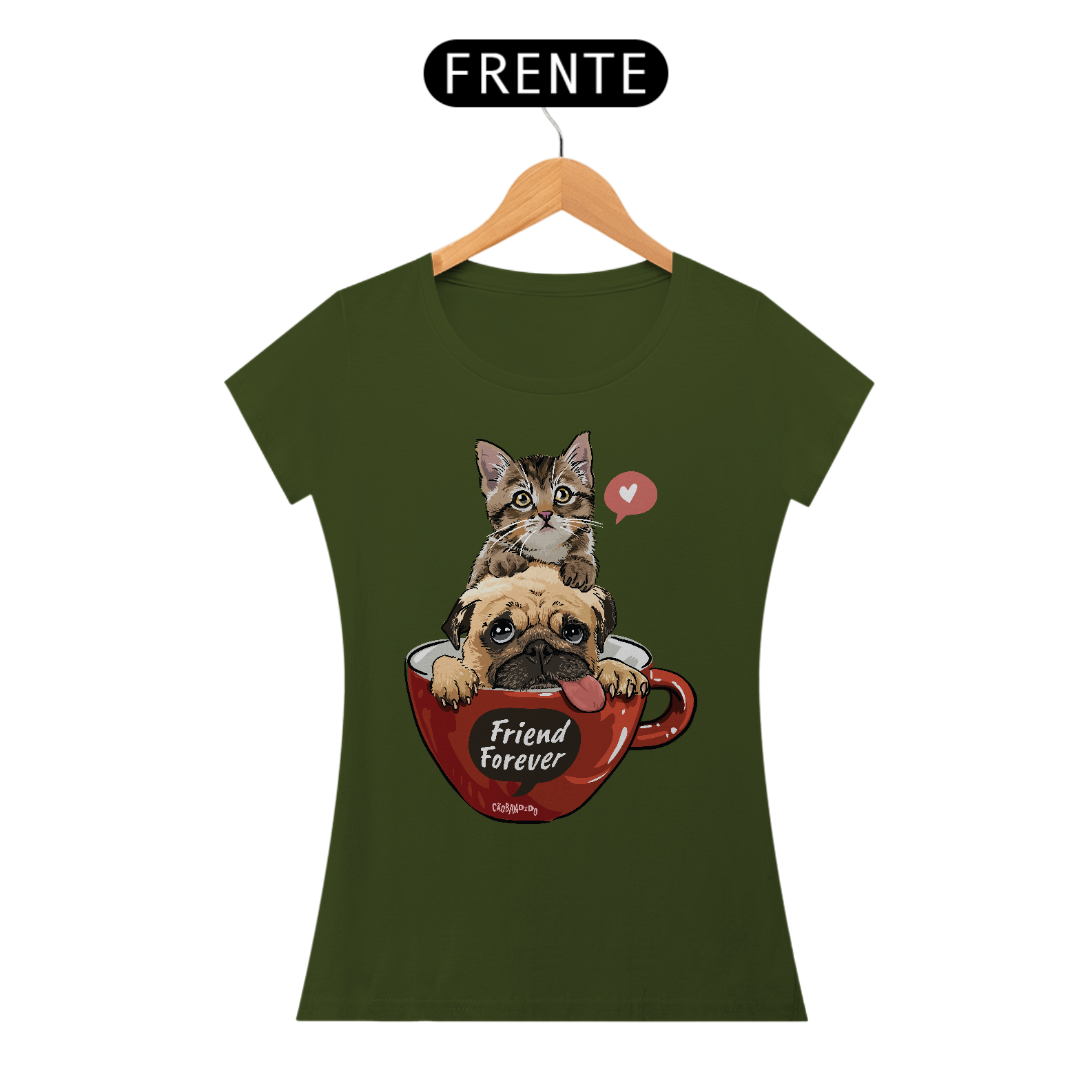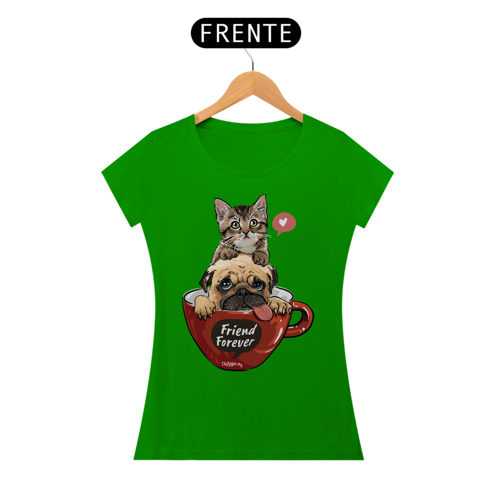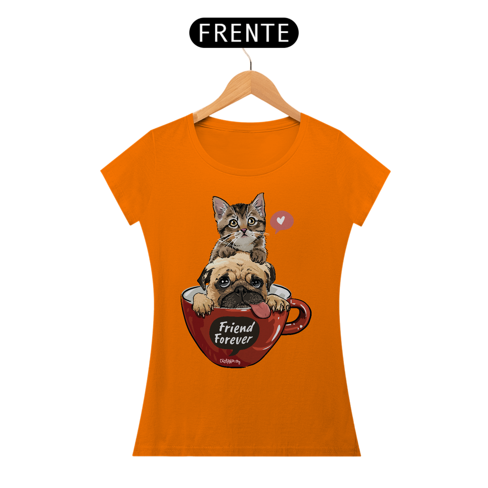 E se você é pai, ou mãe, de cachorro e de gato, vai amar a camiseta feminina Amigo para Sempre!
