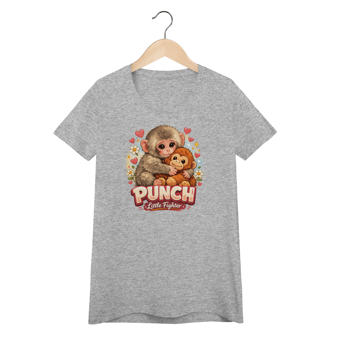 Baby Look com estampa inspirada no macaquinho Punch, símbolo de fofura, carinho e superação.
