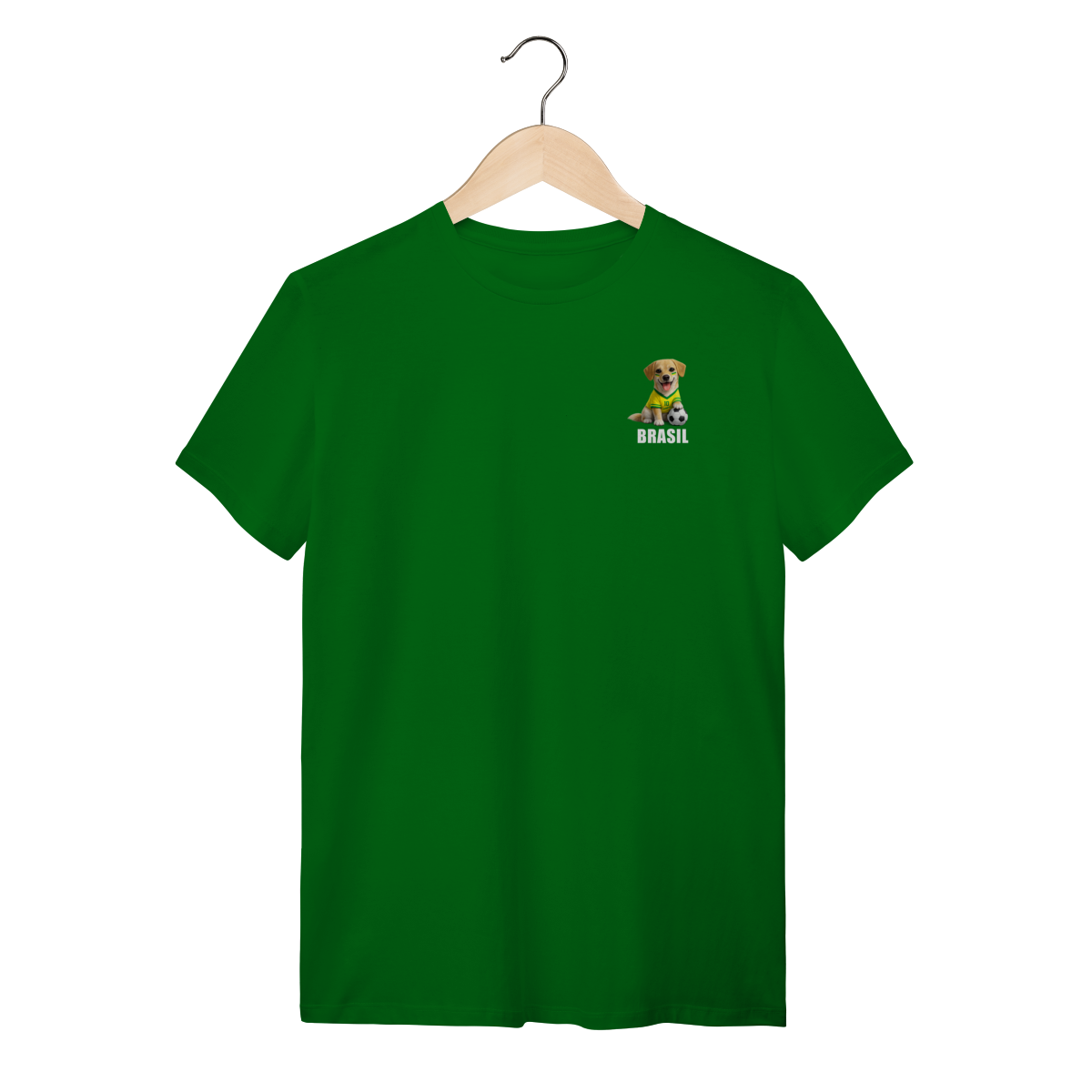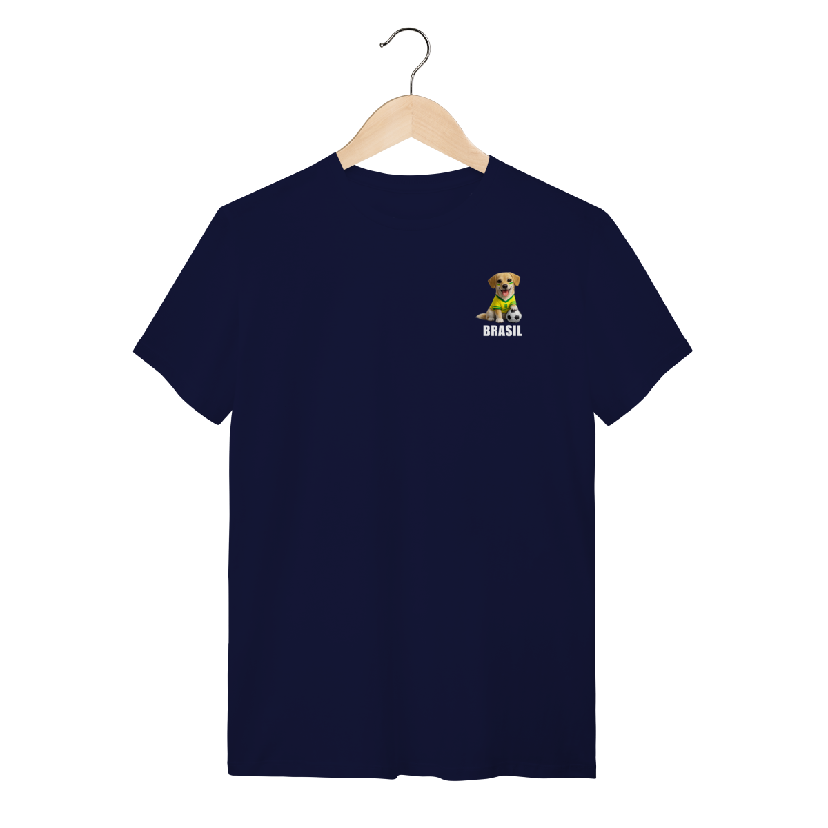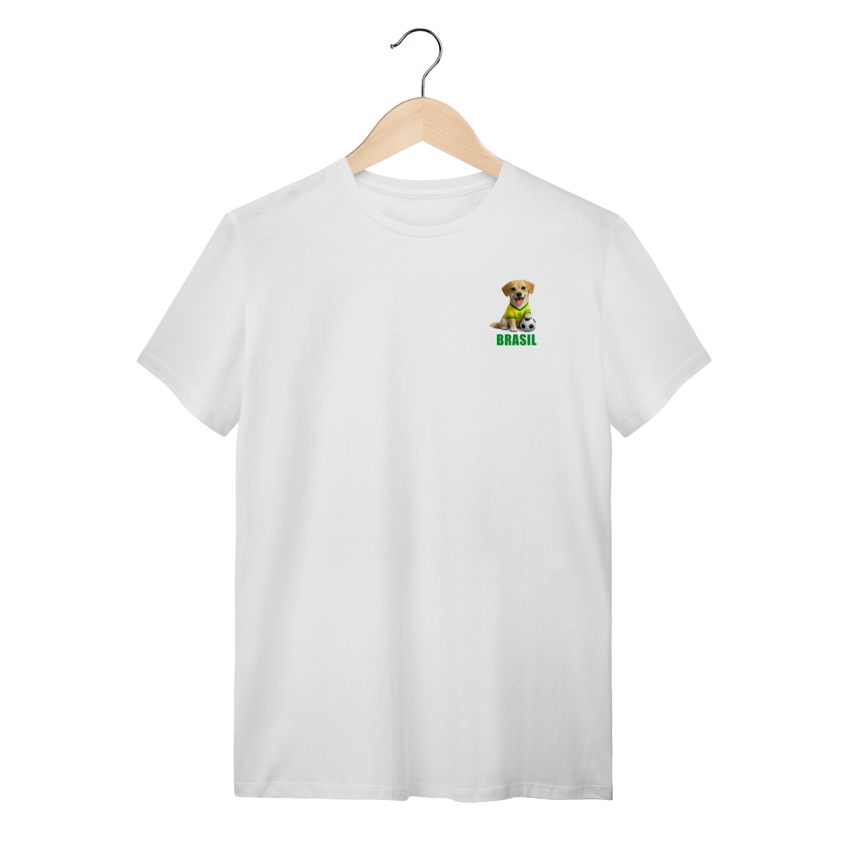 Um modelo que combina paixão por cachorro, futebol e estilo brasileiro em uma única estampa.