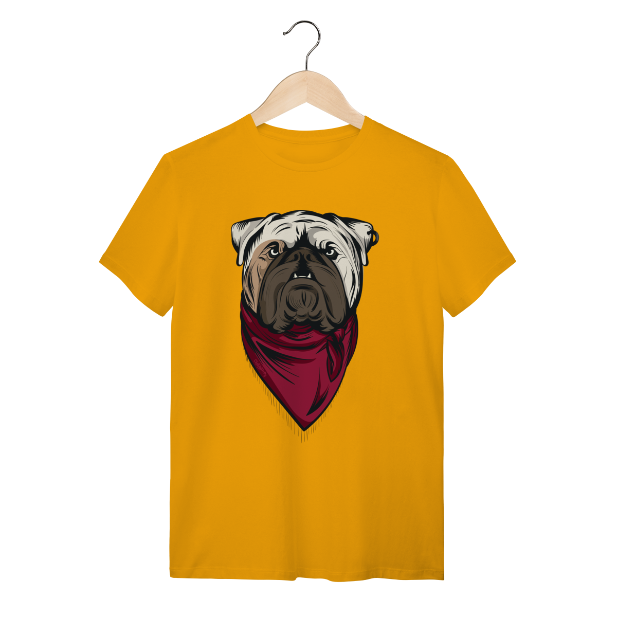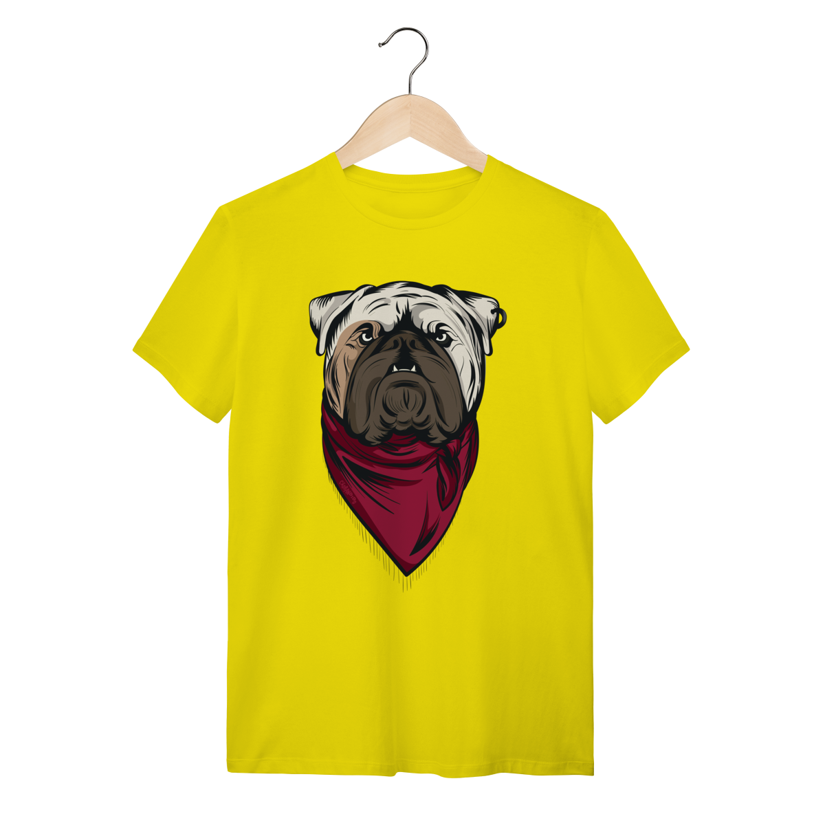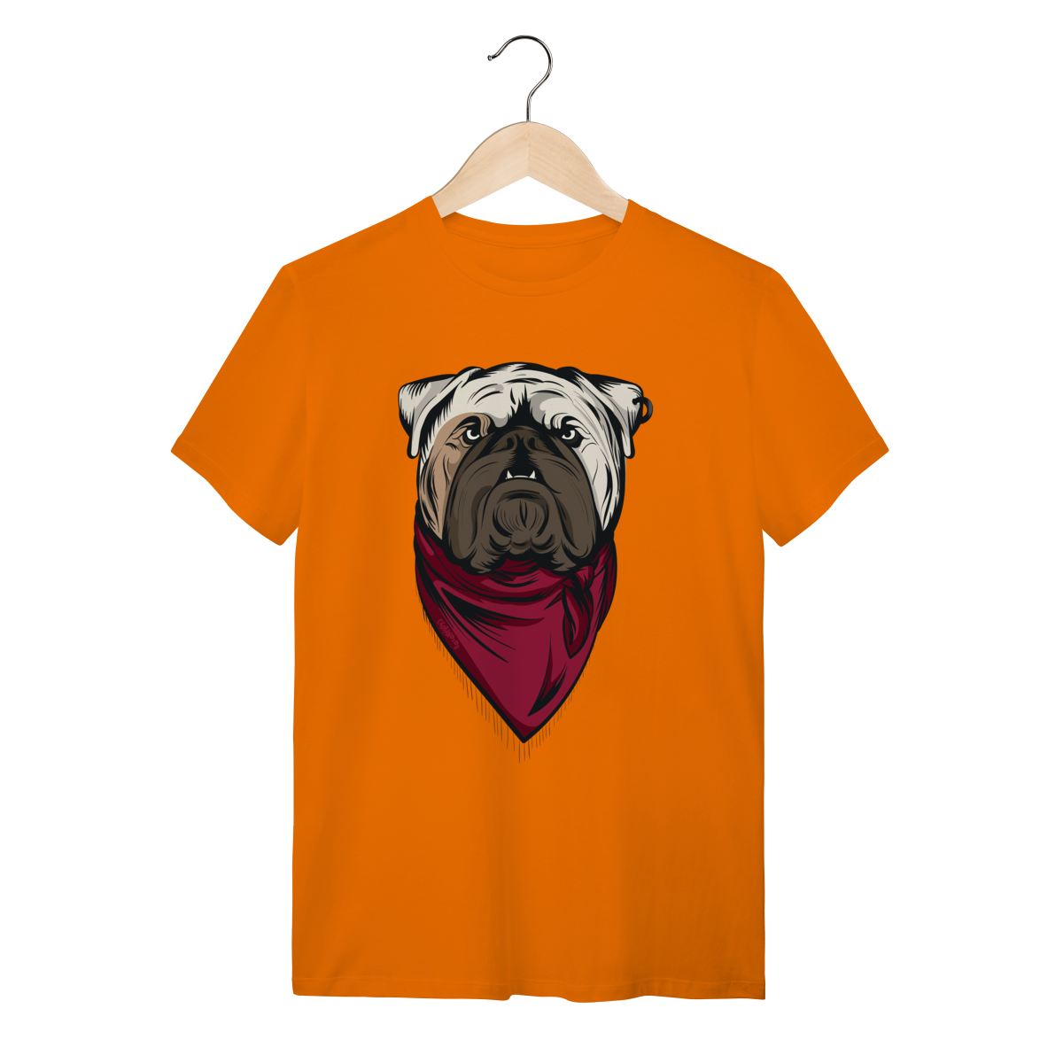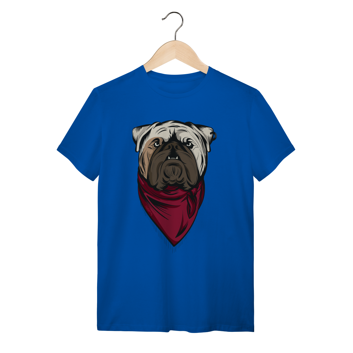 Esta camiseta traz um imponente Buldogue Inglês em ilustração marcante, com expressão forte e uma bandana vermelha que dá um toque moderno e cheio de atitude. Perfeita para quem ama cães de presença e quer mostrar essa paixão no look do dia a dia.