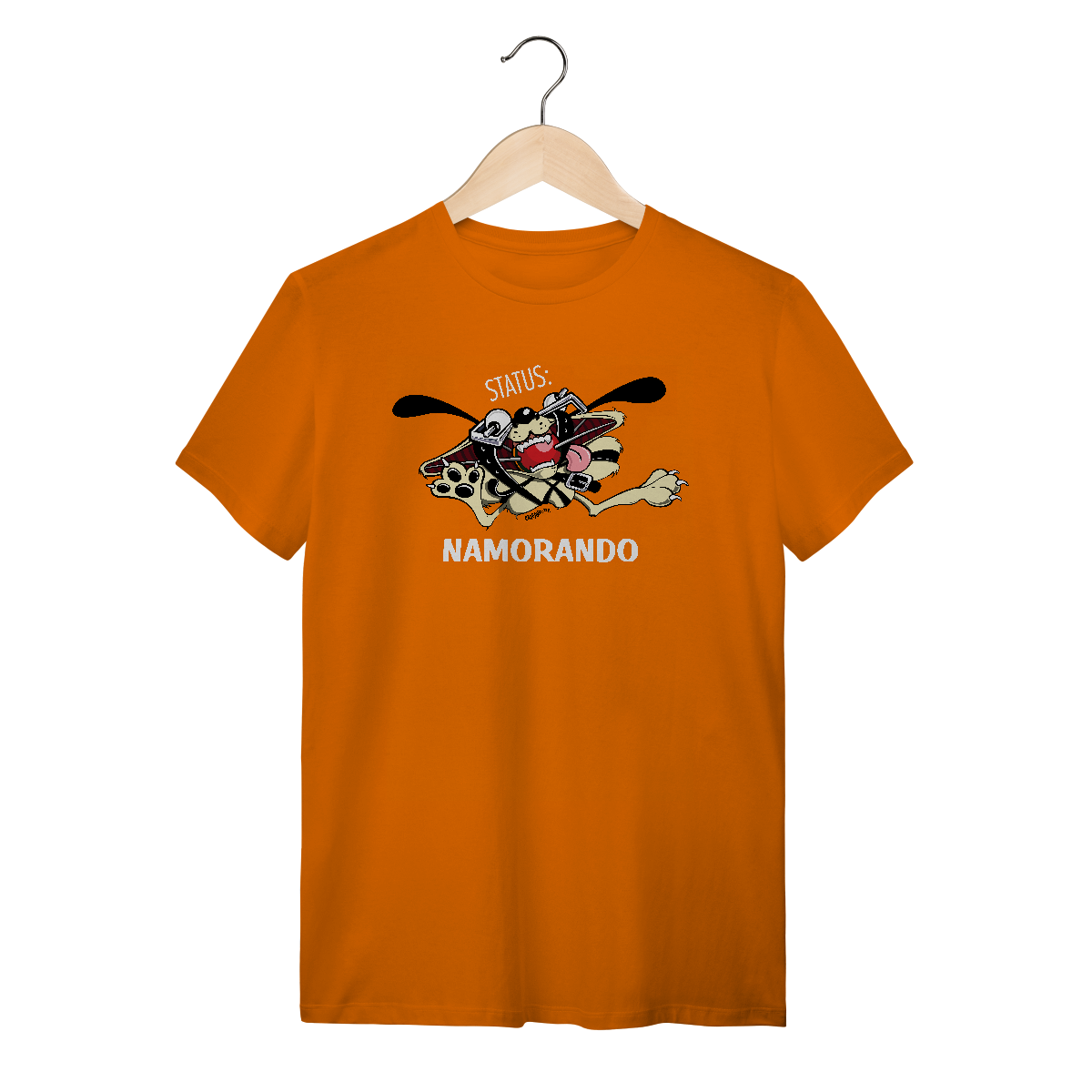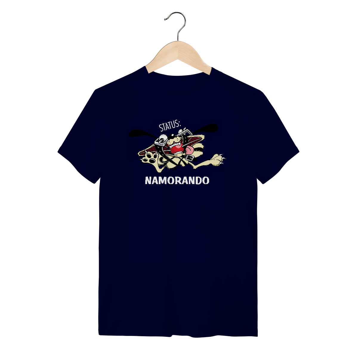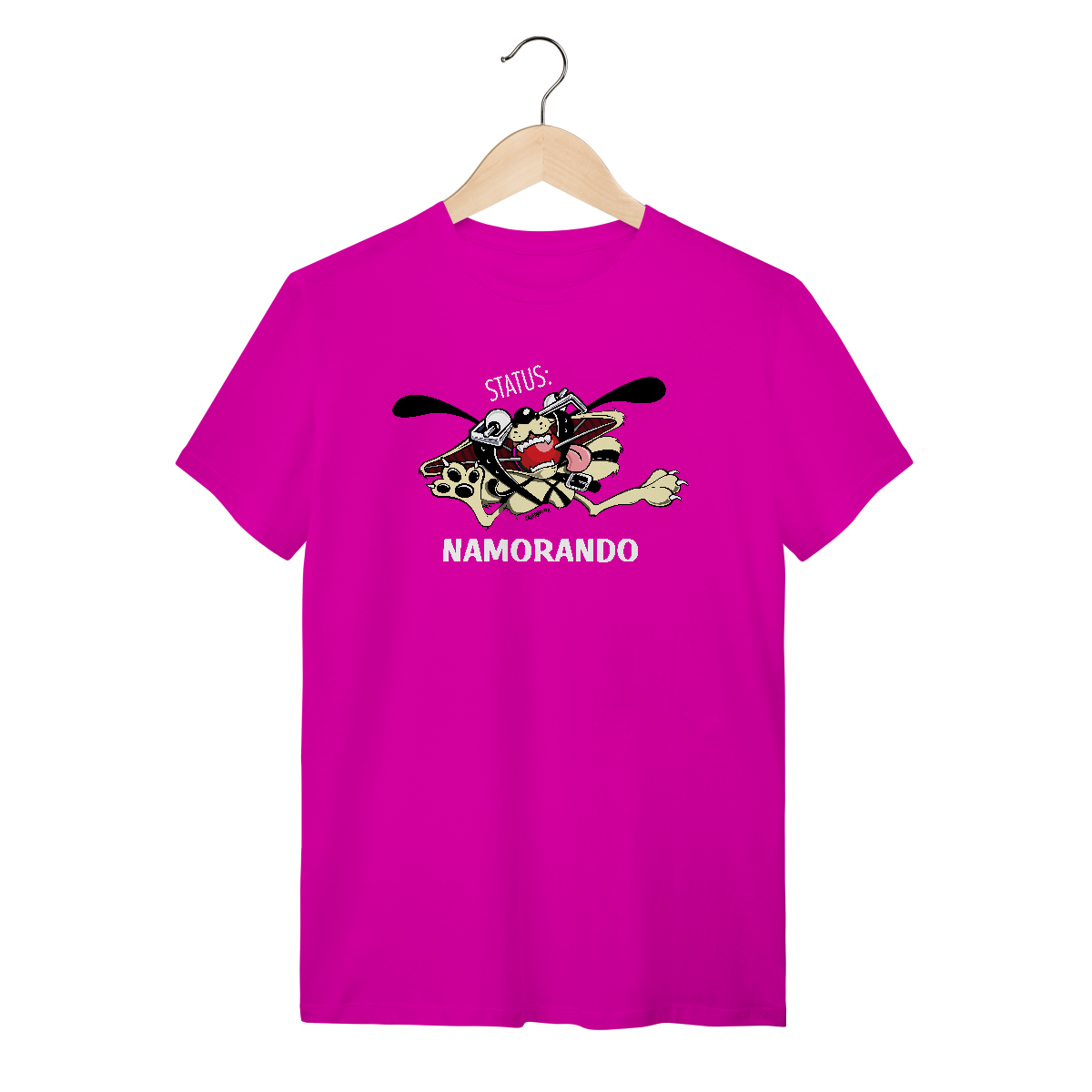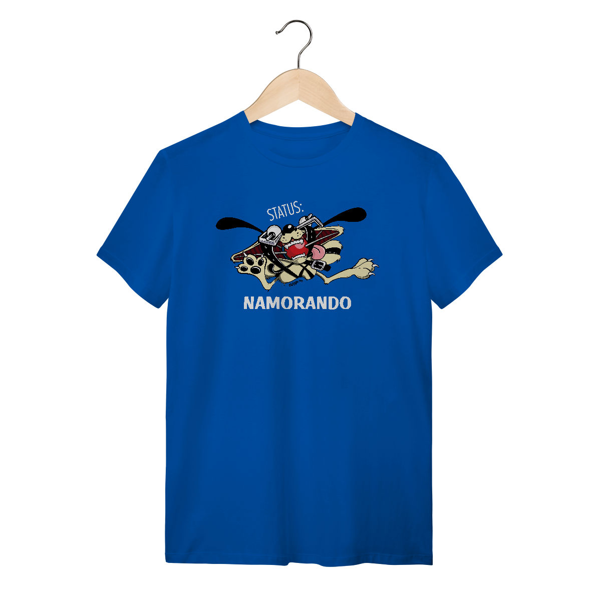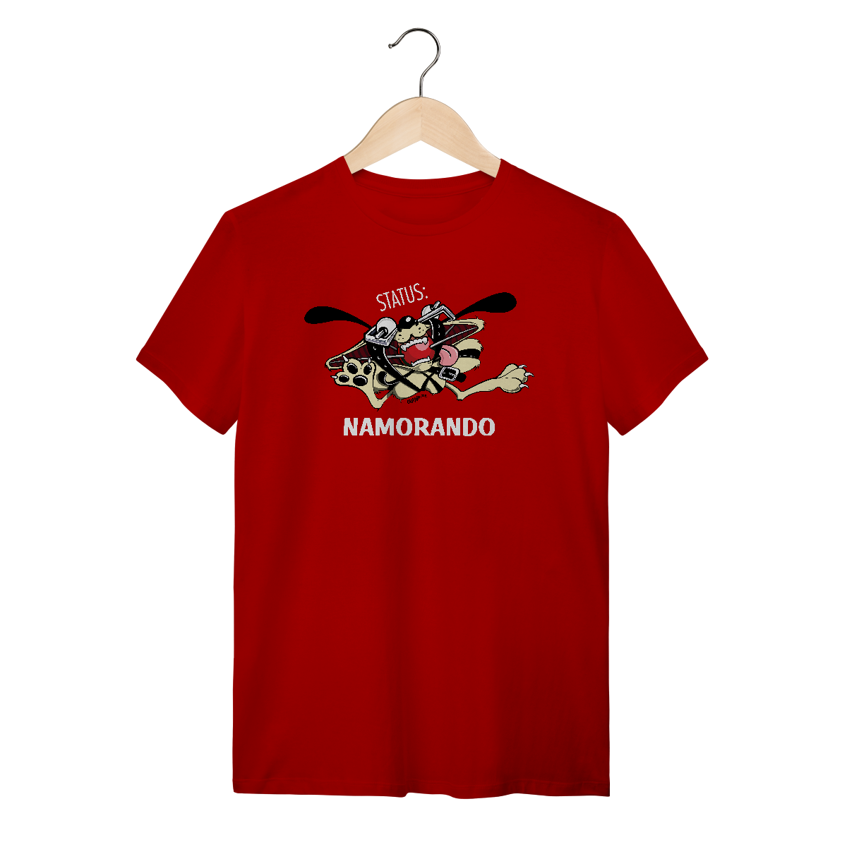 Dica para as namoradas: Dê esta Camiseta Cachorro Status Namorando de presente para o seu namorado, com esta camiseta nenhuma concorrente vai colocar as mãos nele!