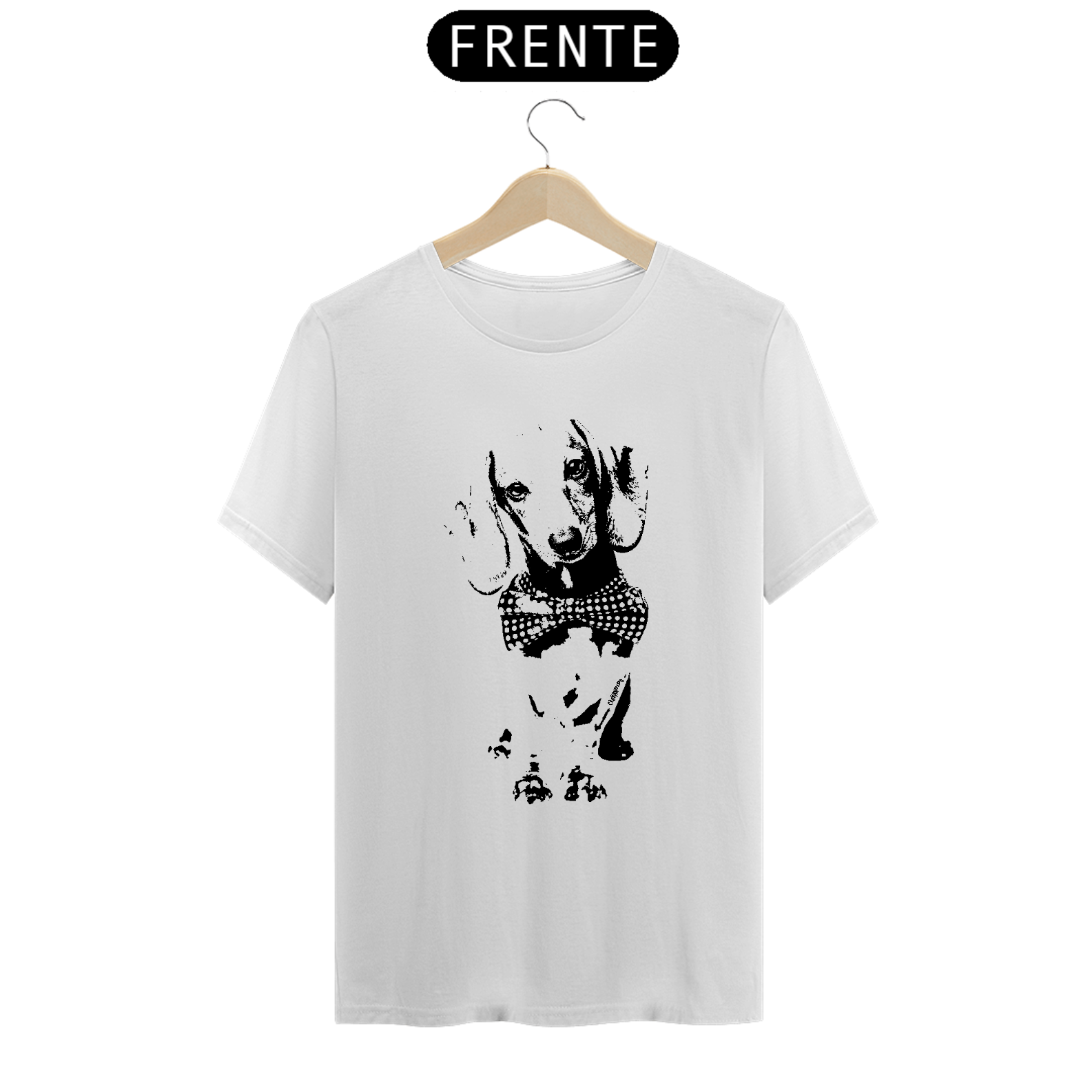 Se você tem um cachorro da raça Dachshund, ou Salsicha, você vai amar esta linda camiseta com a estampa em preto e branco, super moderna!