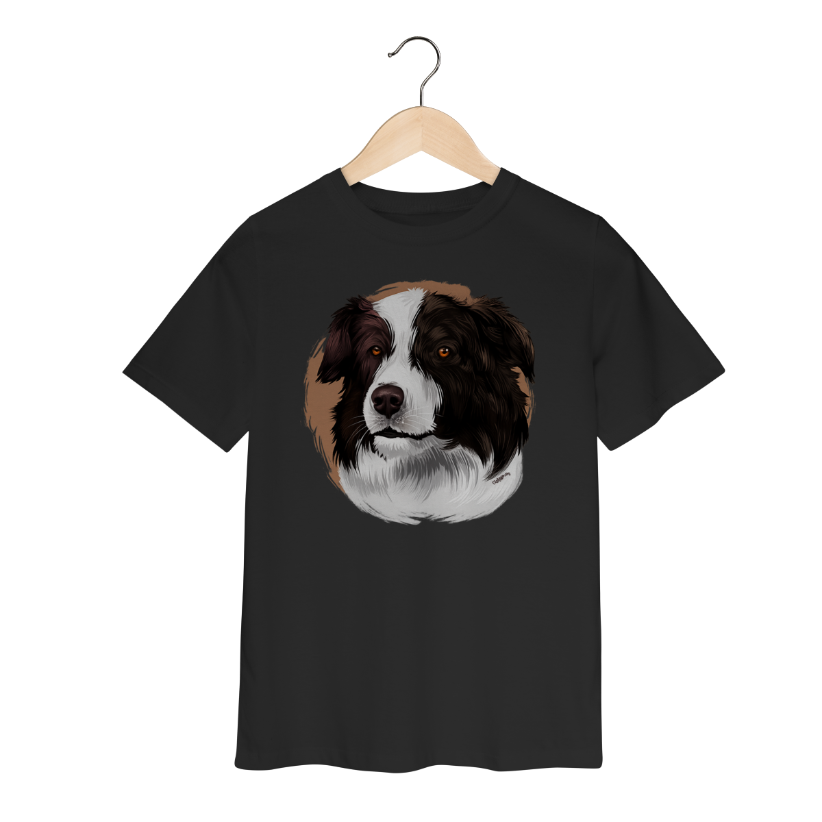 A estampa traz o olhar marcante e a energia dessa raça famosa por aprender rápido, obedecer com facilidade e encarar qualquer desafio com foco e agilidade.