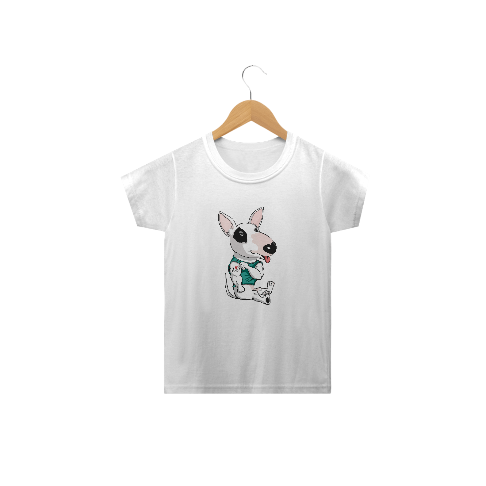 Se o seu filho é pai de um lindo Bull Terrier, esta camiseta infantil é perfeita para ele!