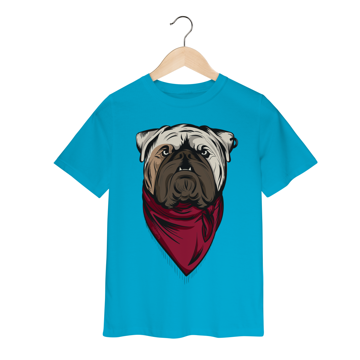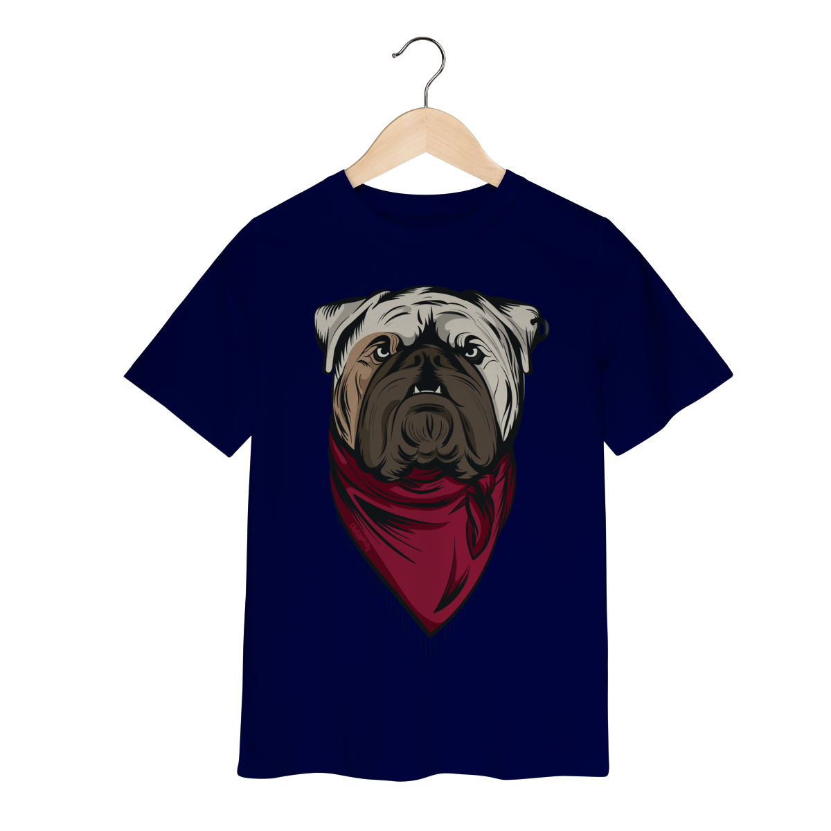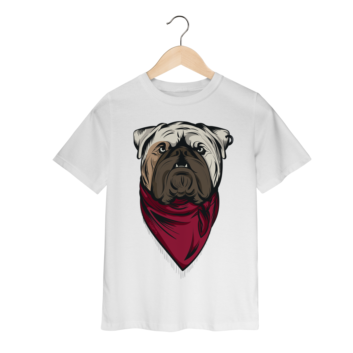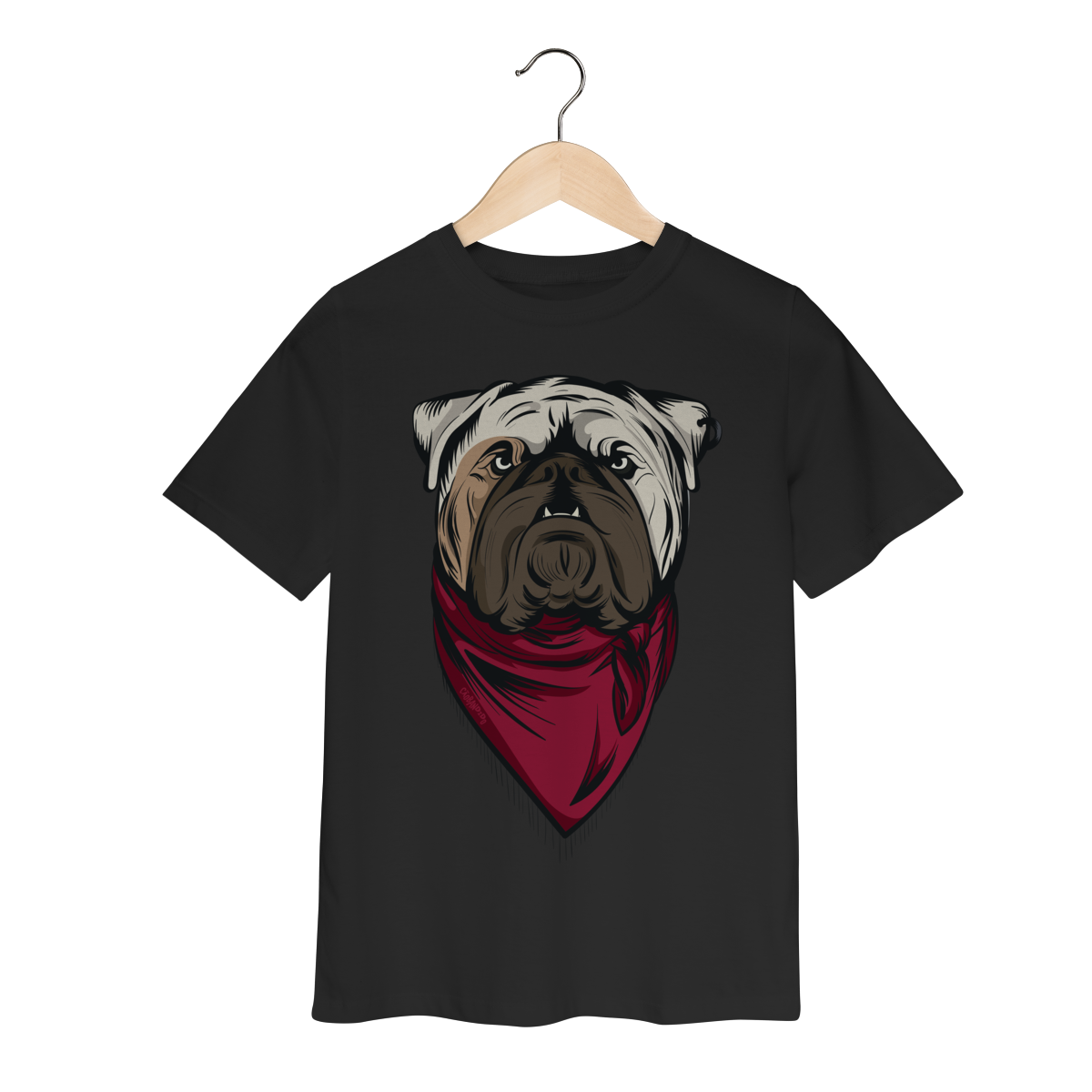 Esta camiseta traz um imponente Buldogue Inglês em ilustração marcante, com expressão forte e uma bandana vermelha que dá um toque moderno e cheio de atitude. Perfeita para quem ama cães de presença e quer mostrar essa paixão no look do dia a dia.