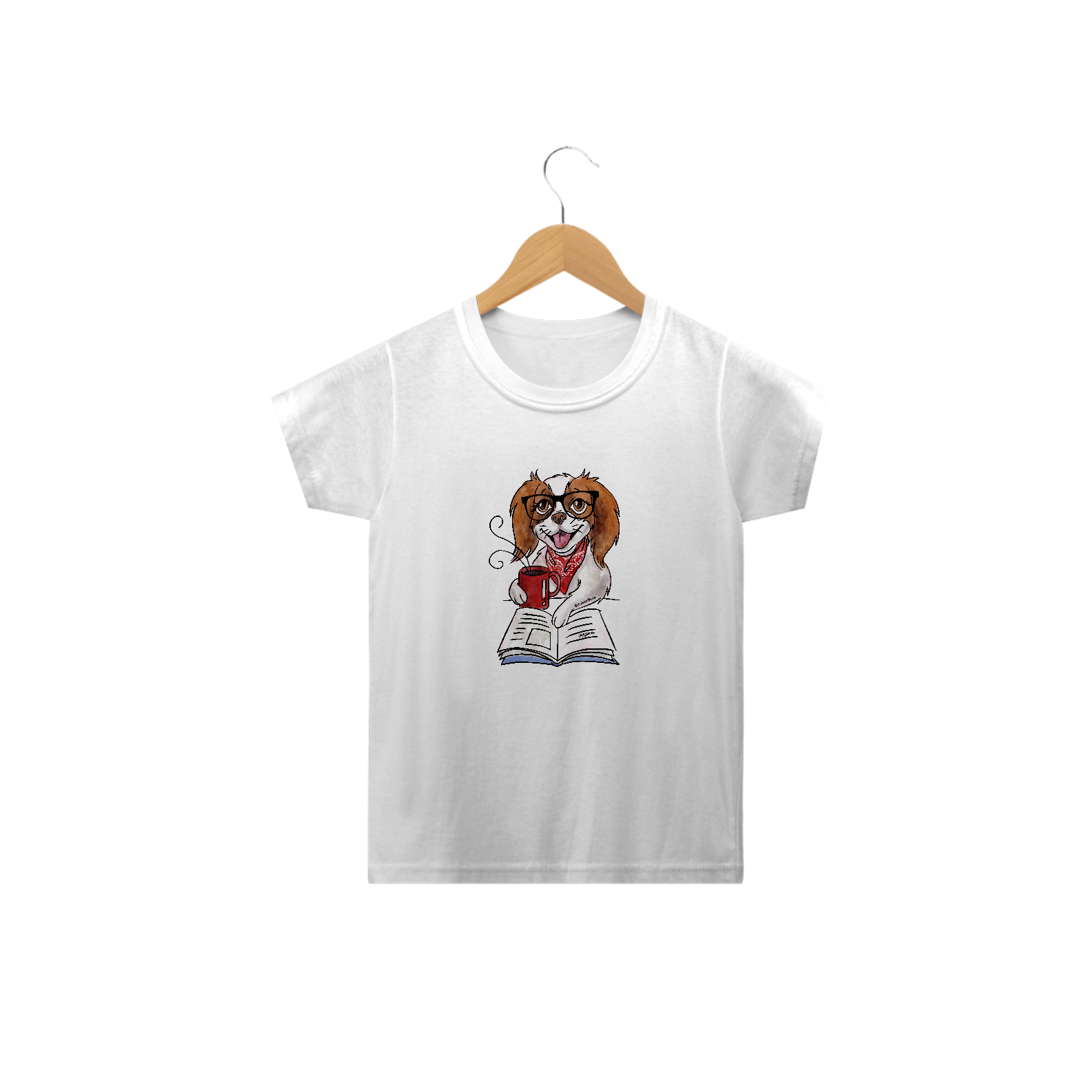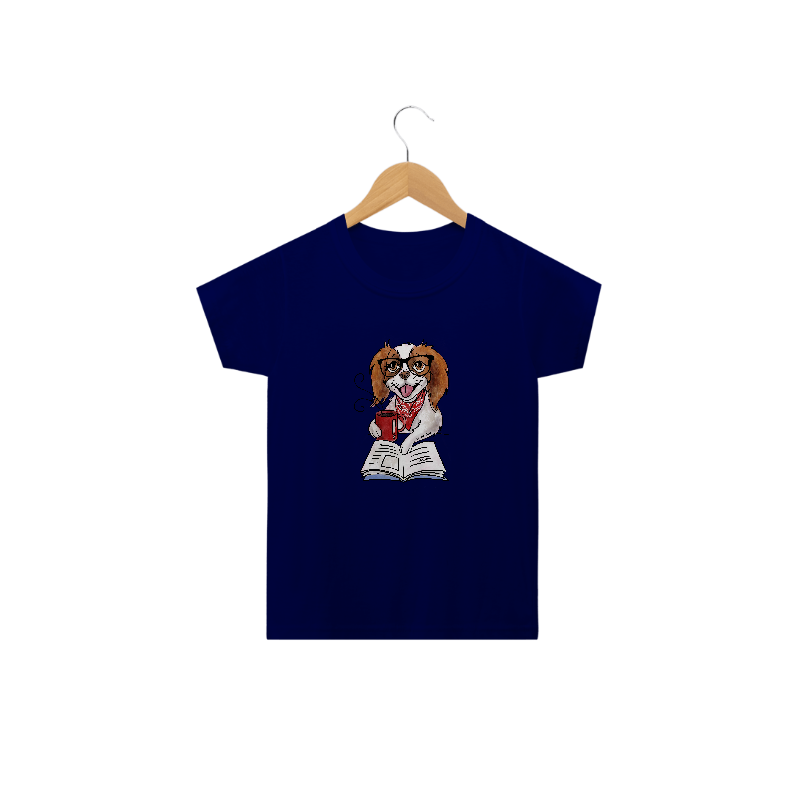 Camiseta Infantil Cachorro, Café e Talvez 1 Livro - Books and Dogs