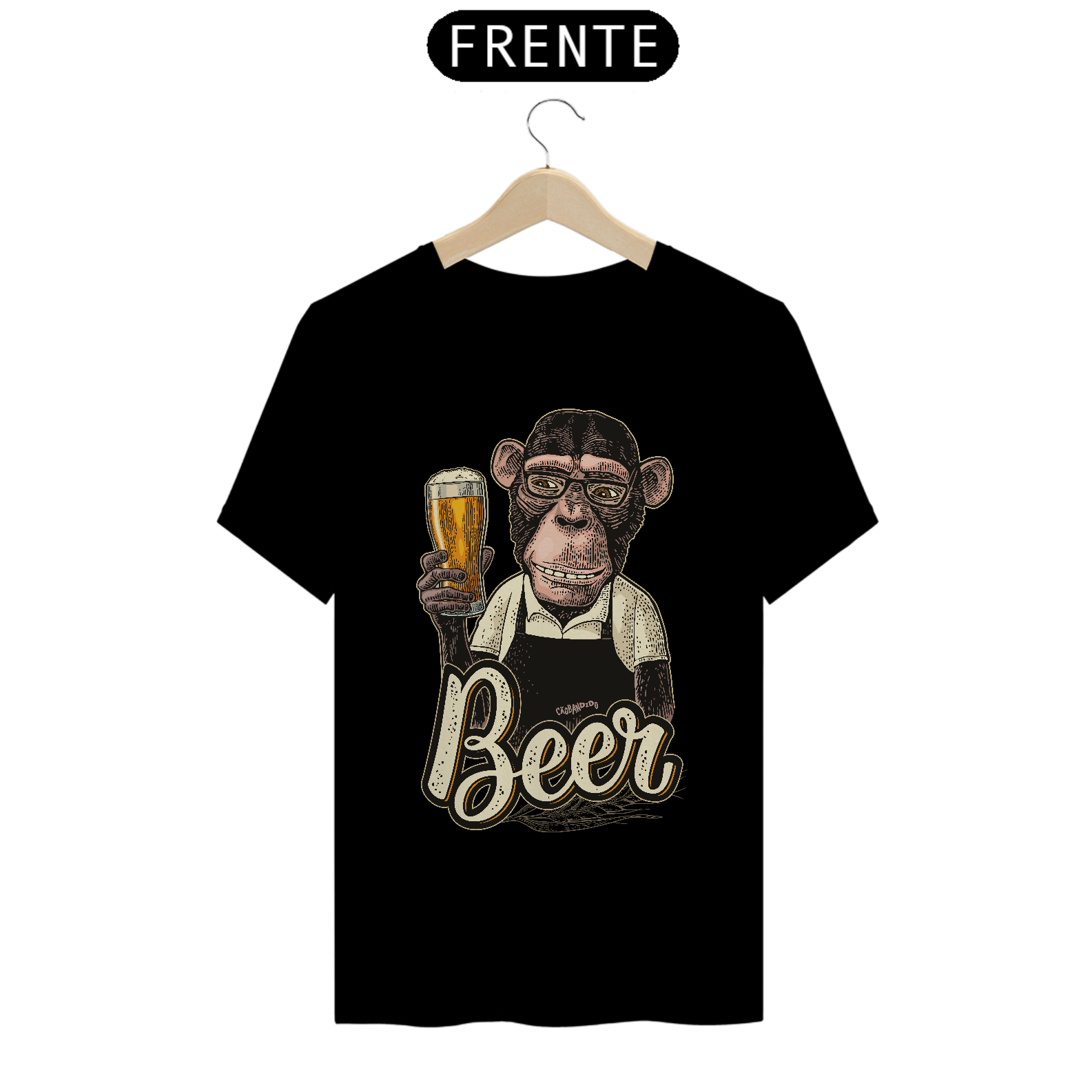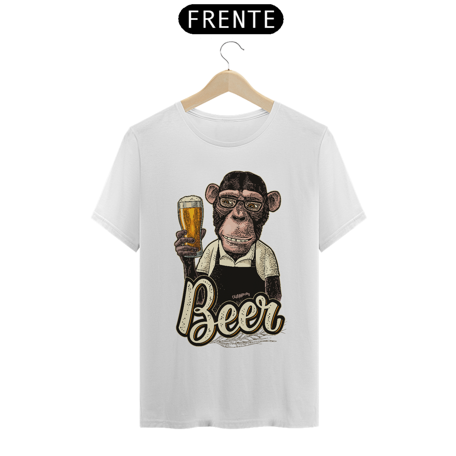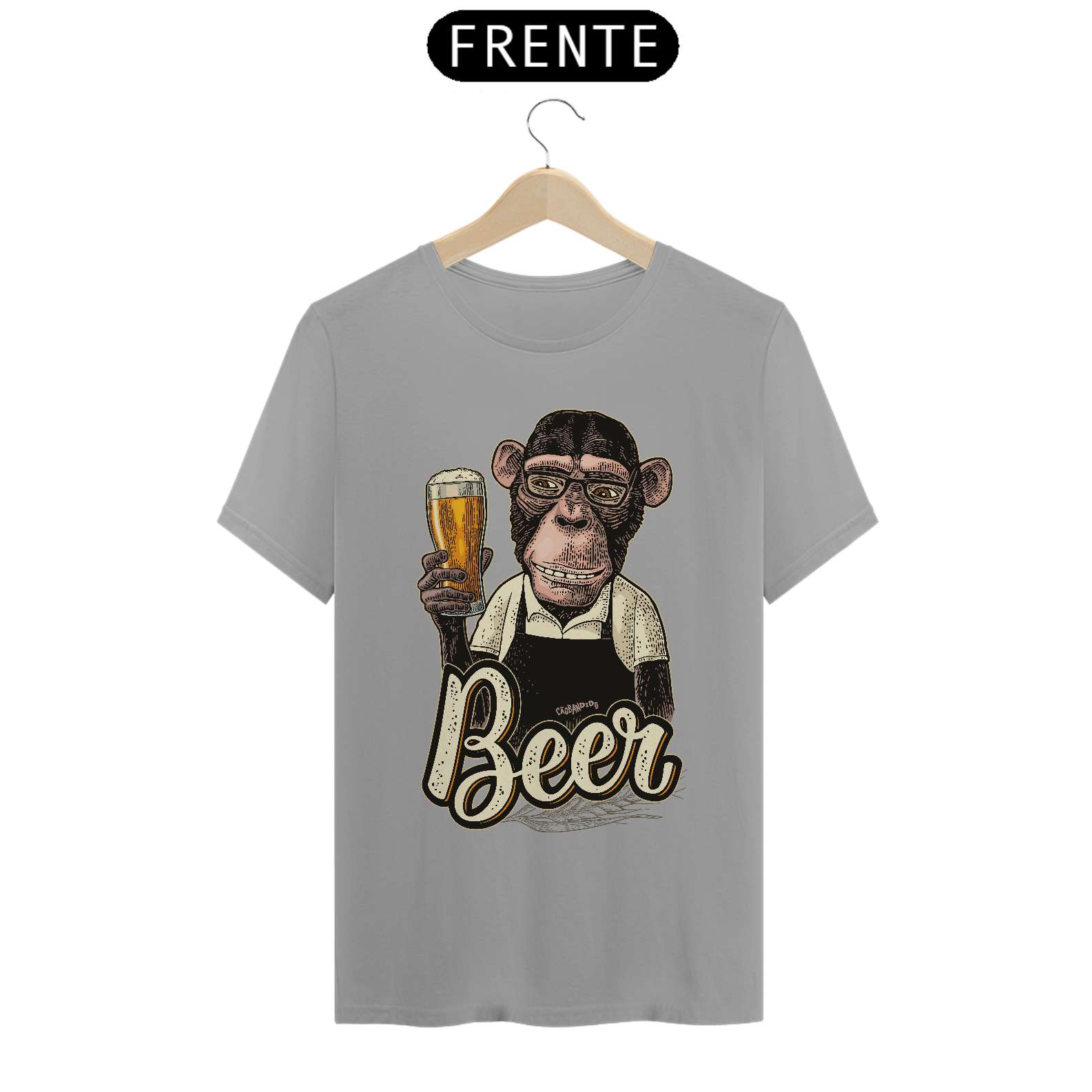 Linda estampa com um macaco segurando um copo de cerveja.