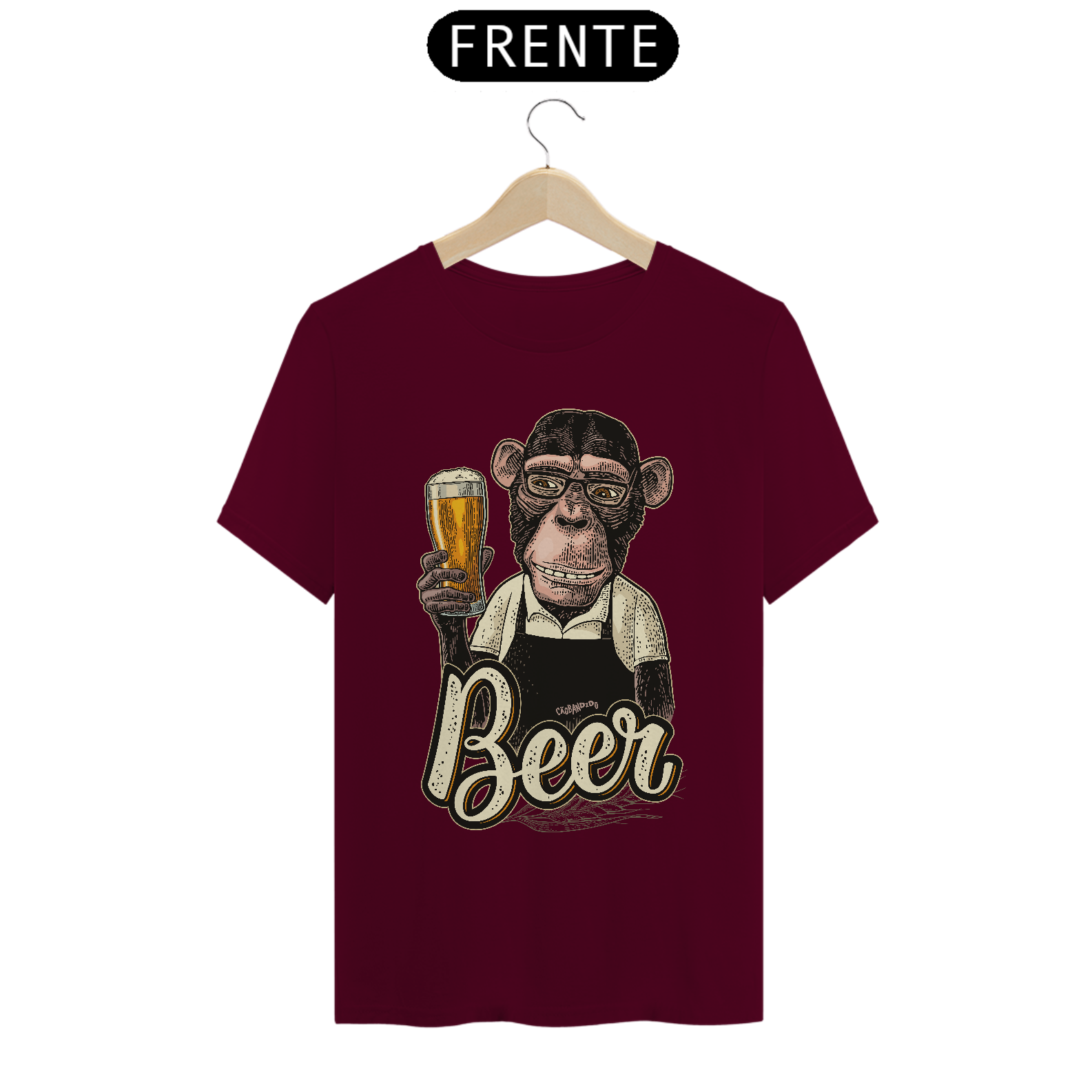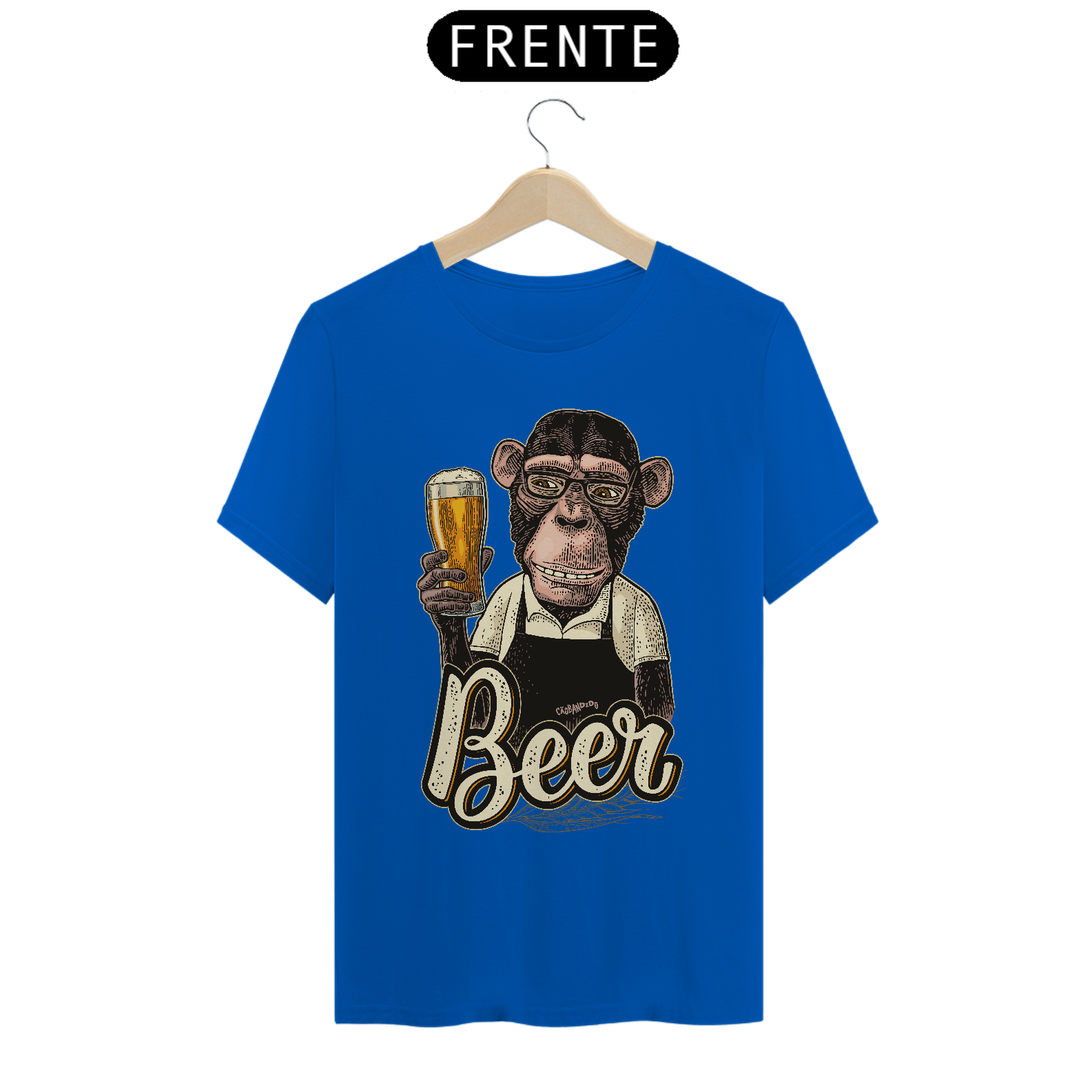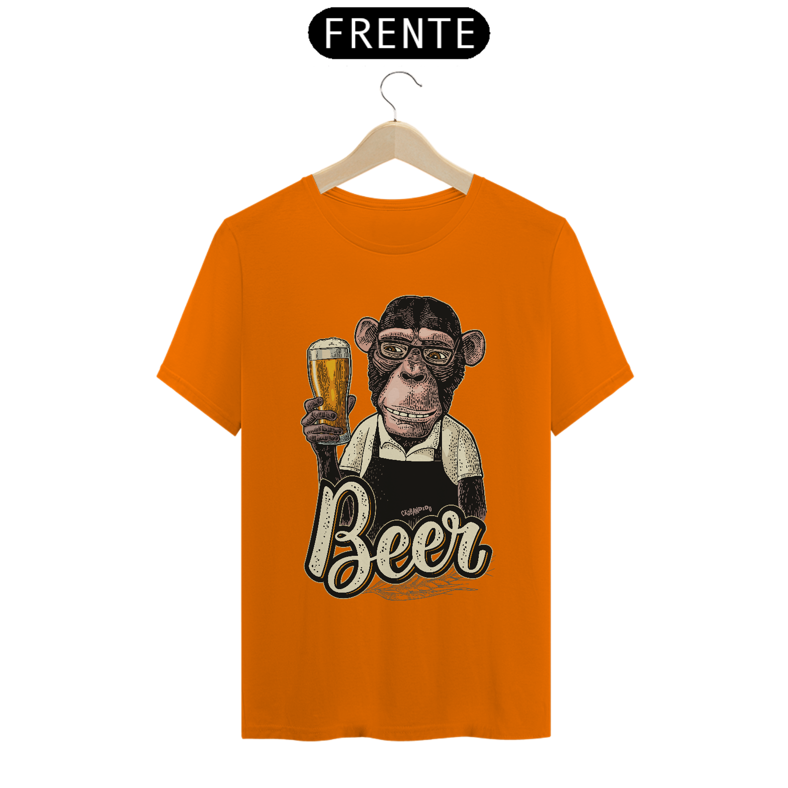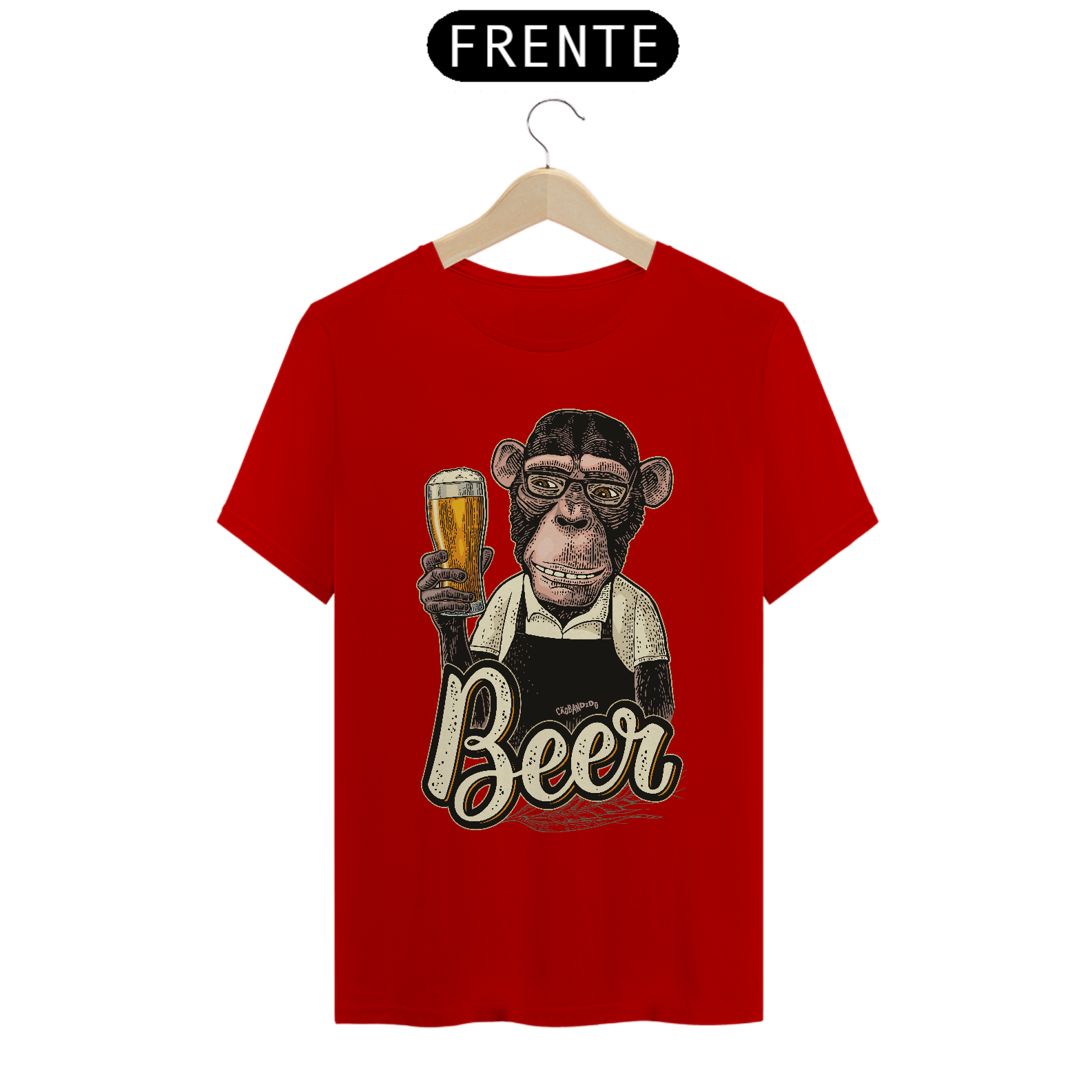 Linda estampa com um macaco segurando um copo de cerveja.