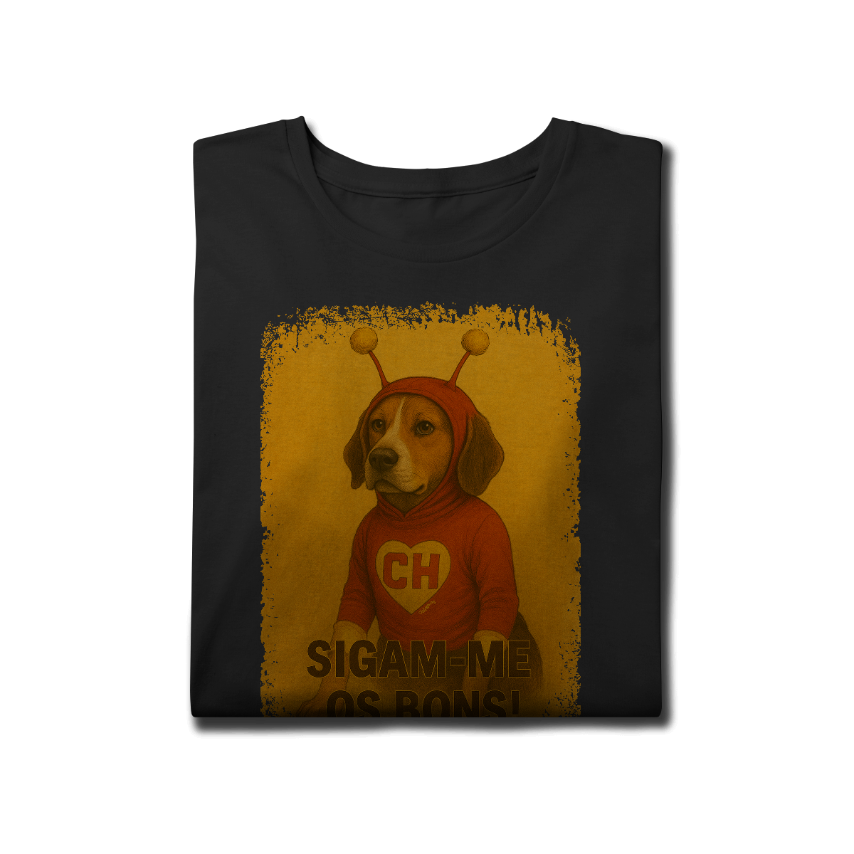 Linda estampa com um cachorro Beagle fantasiado de Chapolin Colorado... essa é pra quem é fã mesmo! :)