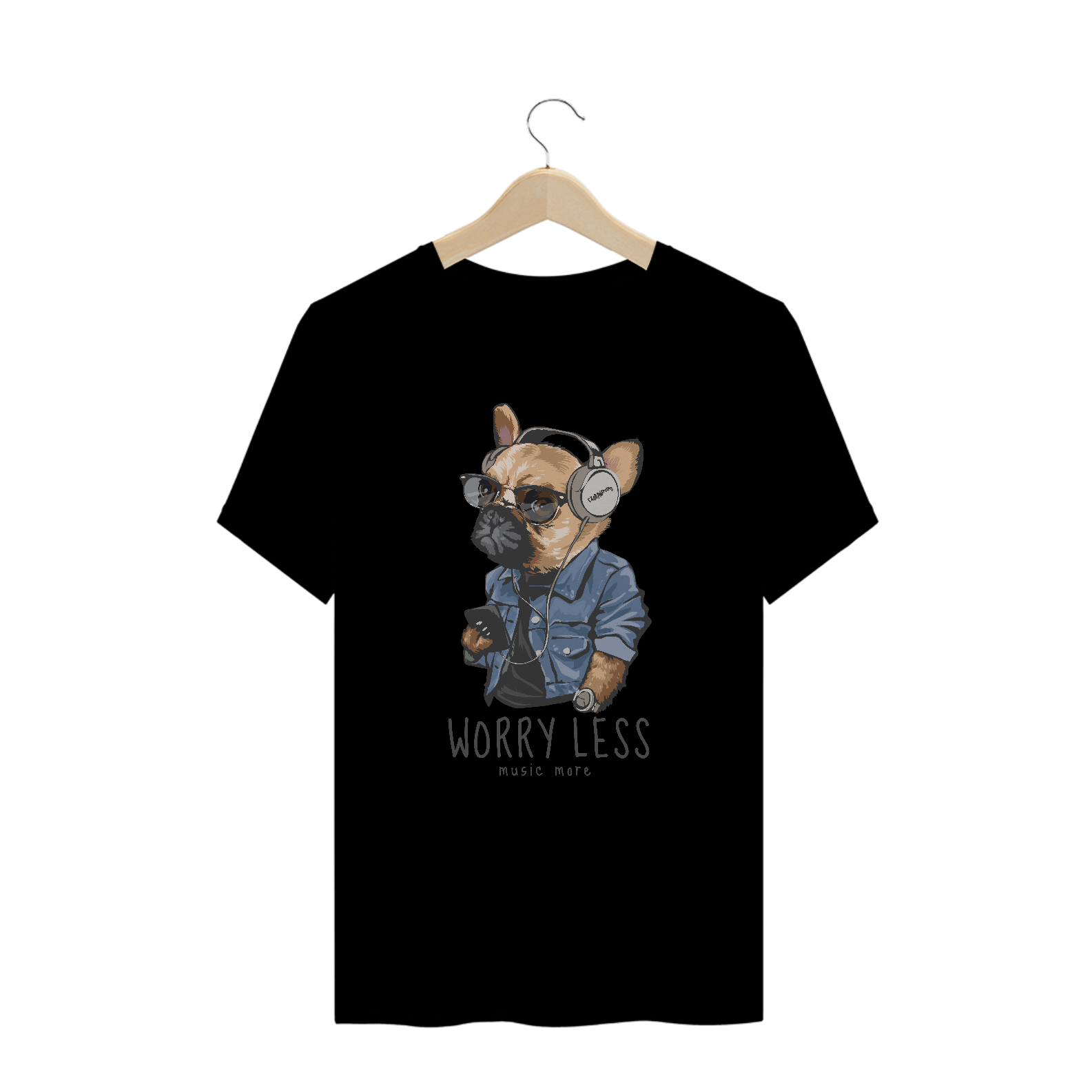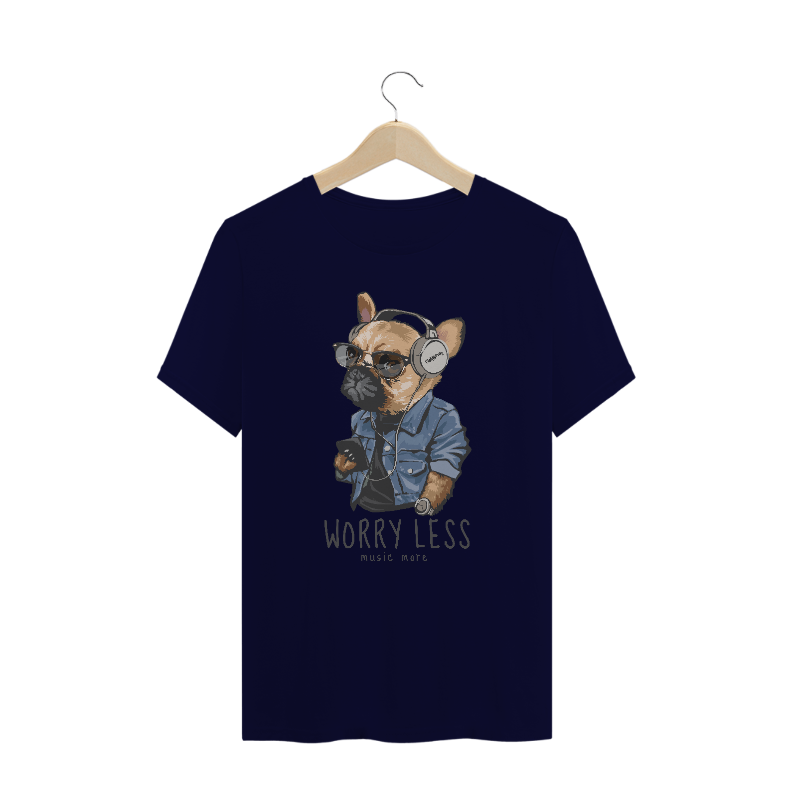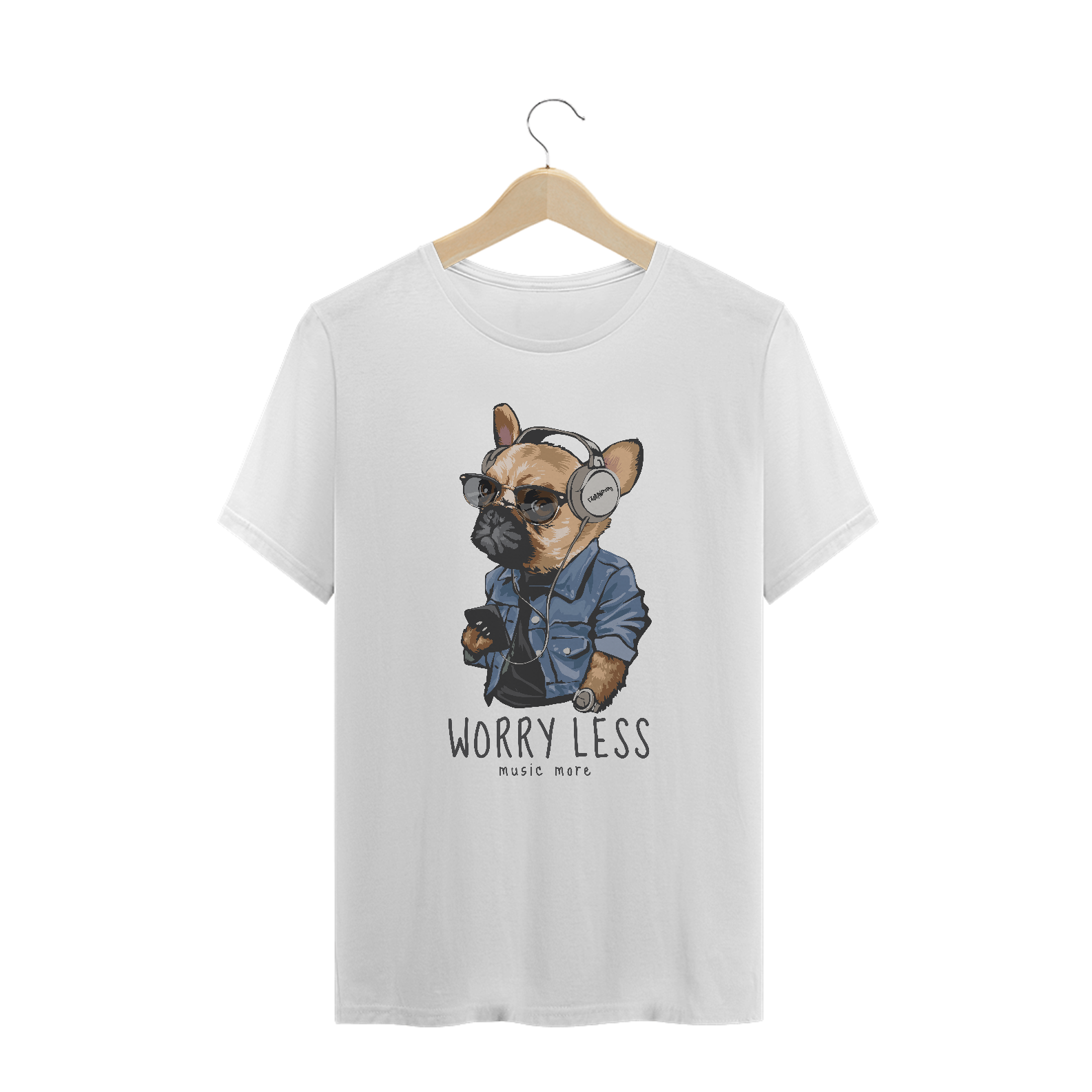 Camiseta Plus Size Cachorro Worry Less - Music More