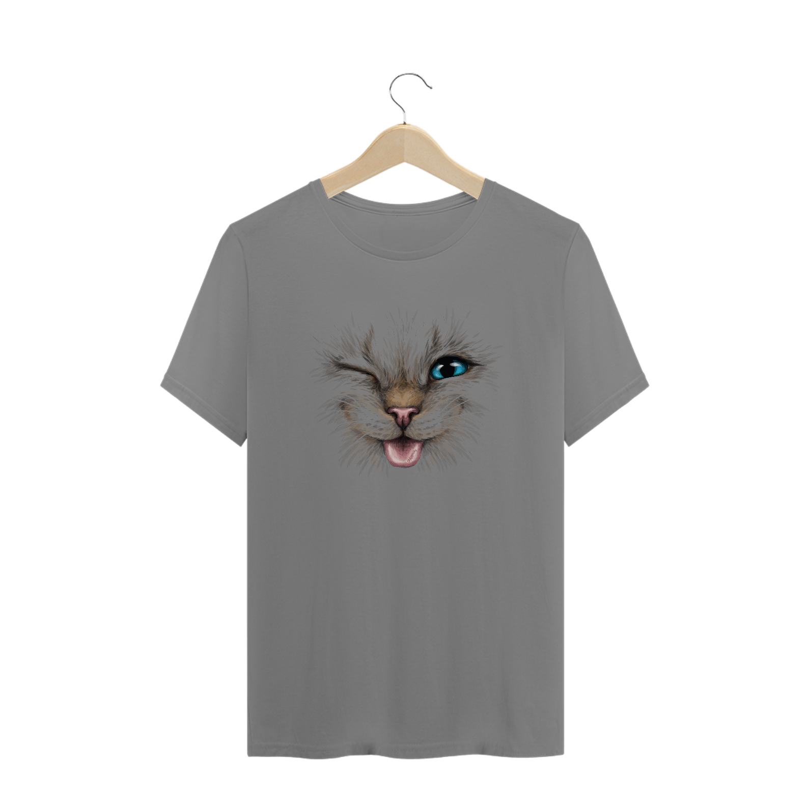 Estampa com um divertido gatinho piscando, cheio de charme!