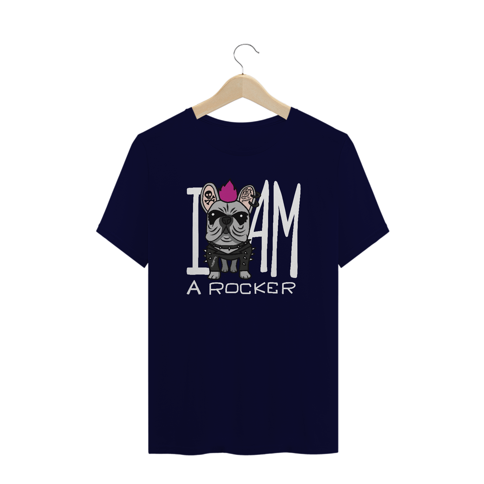 Na estampa um lindo Bulldog Francês roqueiro e cheio de estilo, só sucesso!