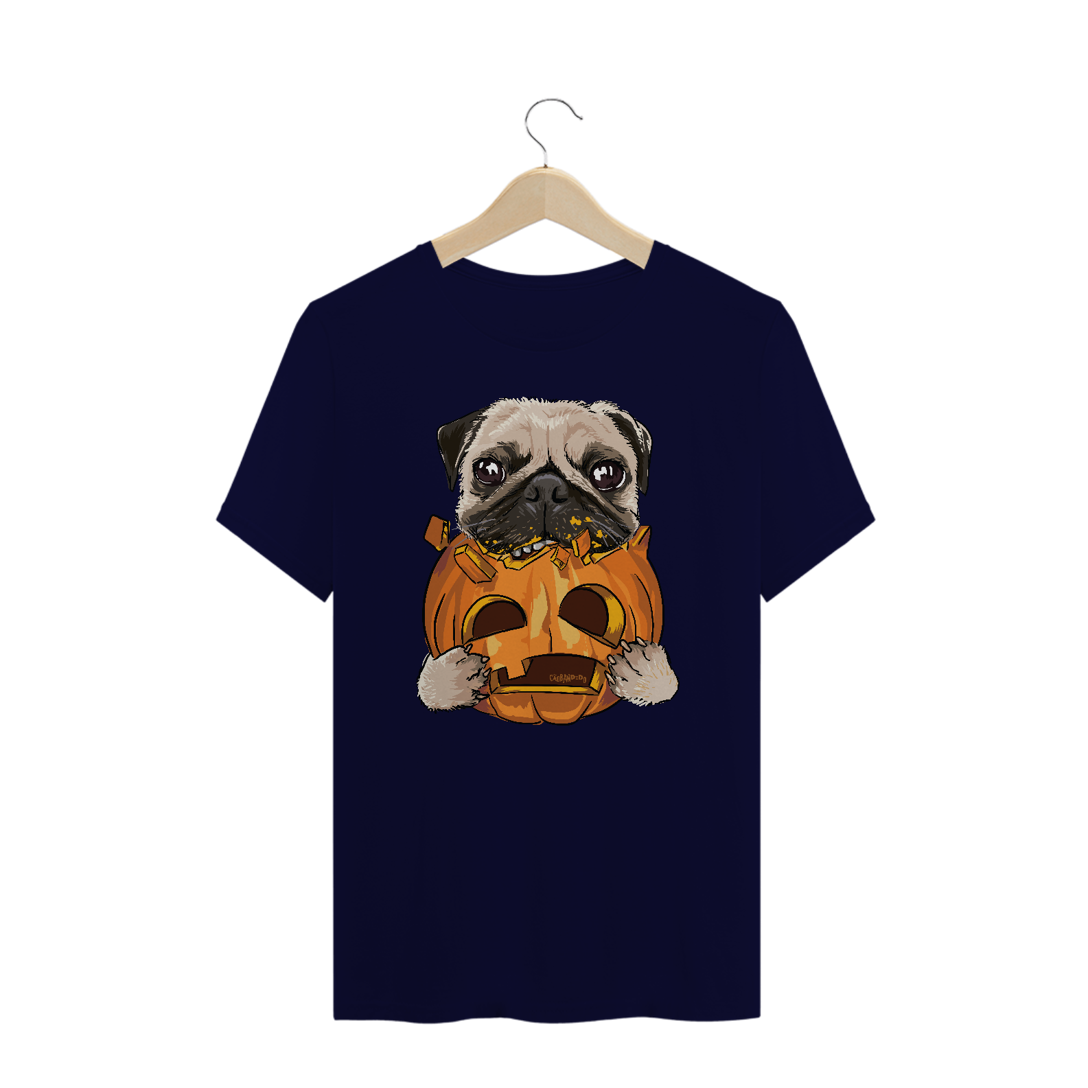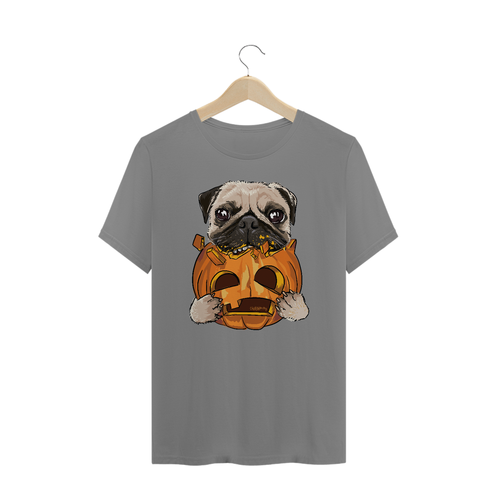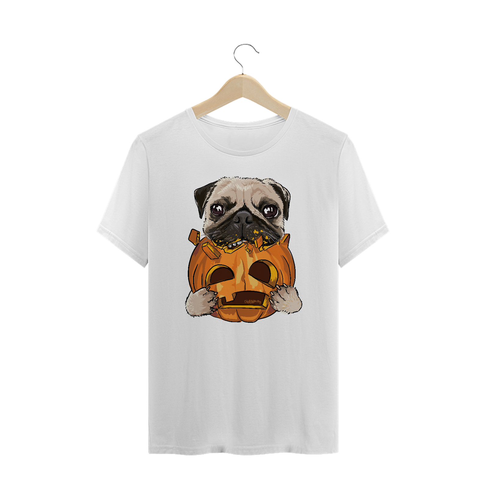 Camiseta Plus Size Pug Comendo uma Abóbora