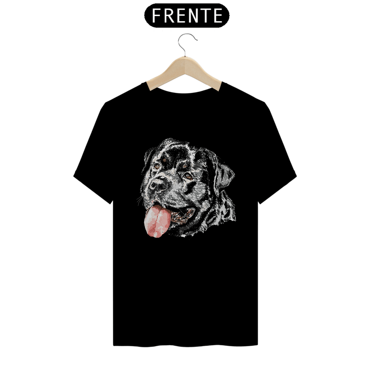 Camiseta Rottweiler Cara Preta Pintura Digital