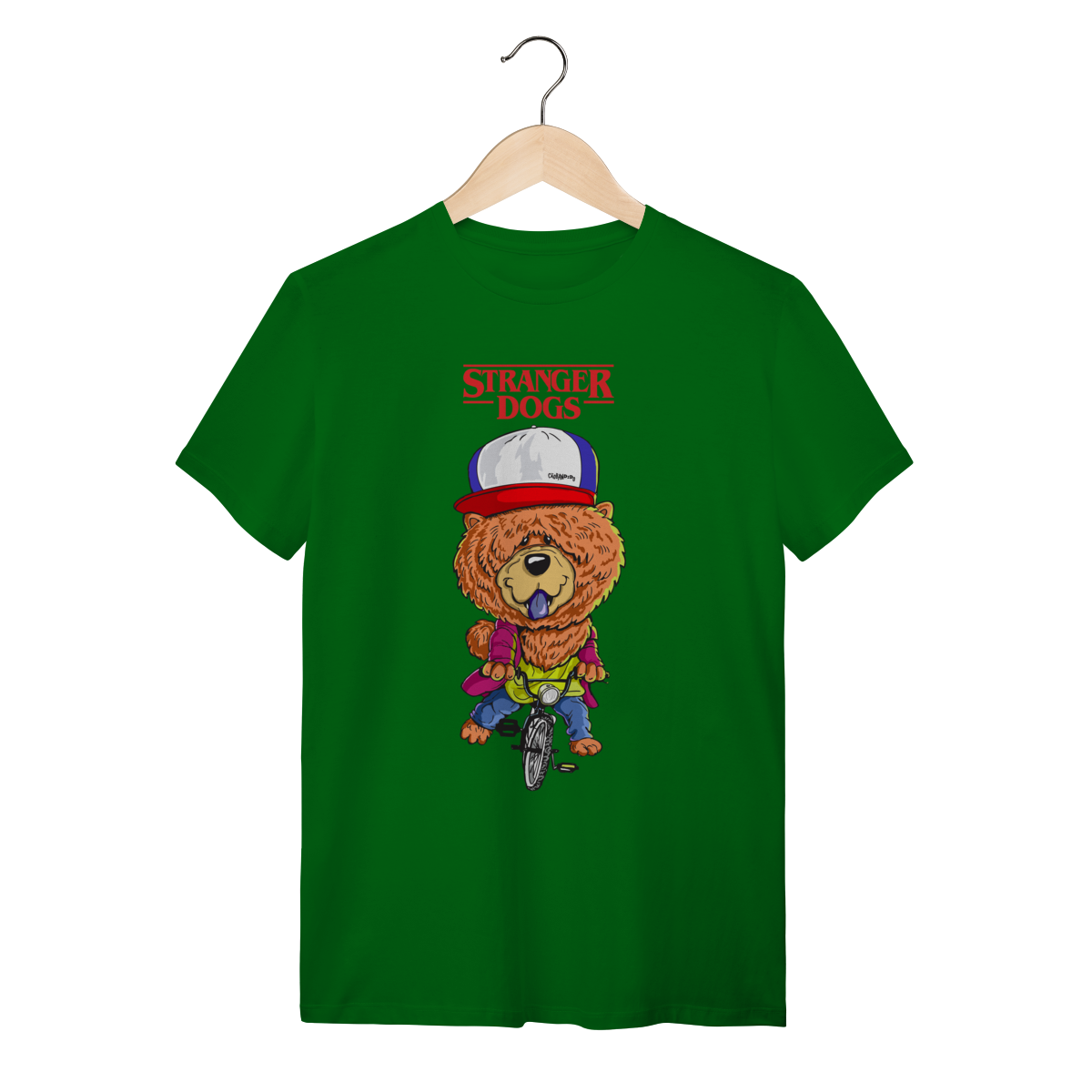 Criada pelo artista Claudio De Marco (@claudio_caricaturas), a estampa Stranger-Dogs foi desenhada a mão, digitalizada e colorida no computador.