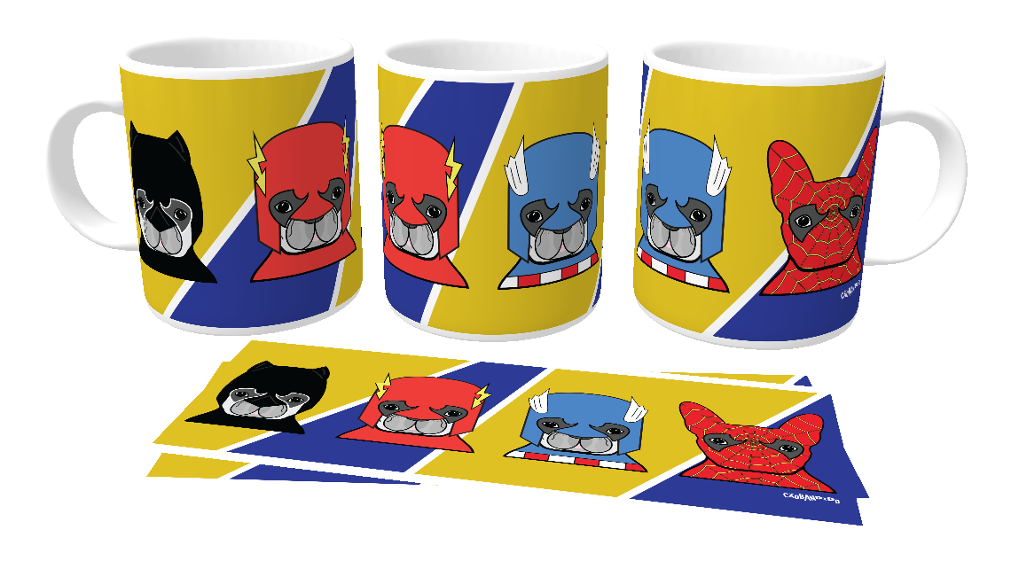 Esta caneca super-heróis vai representar muito bem o seu cachorrinho.