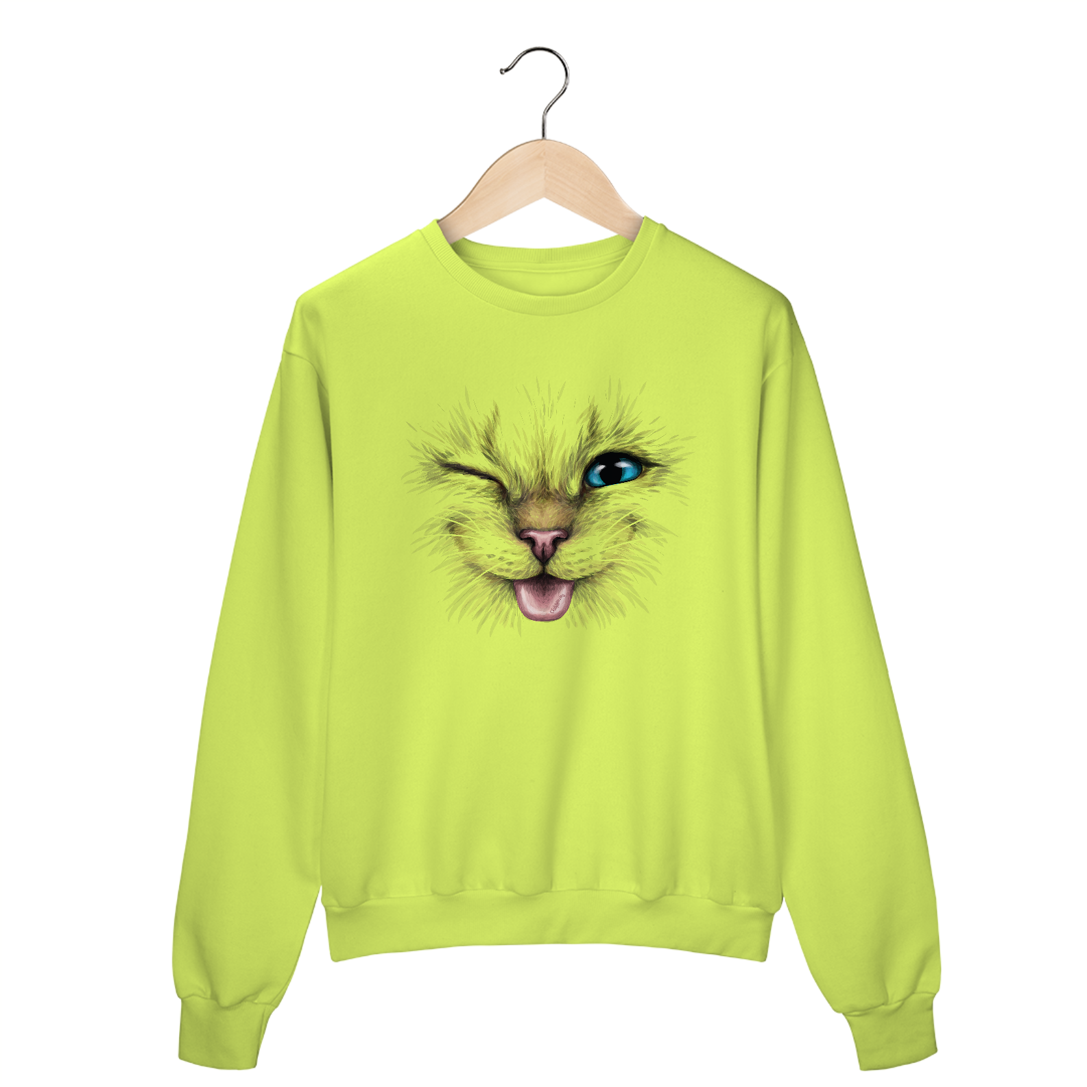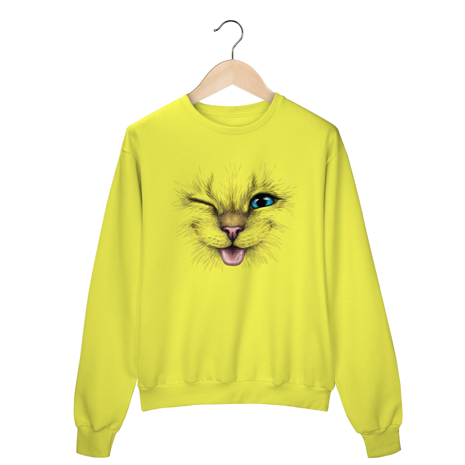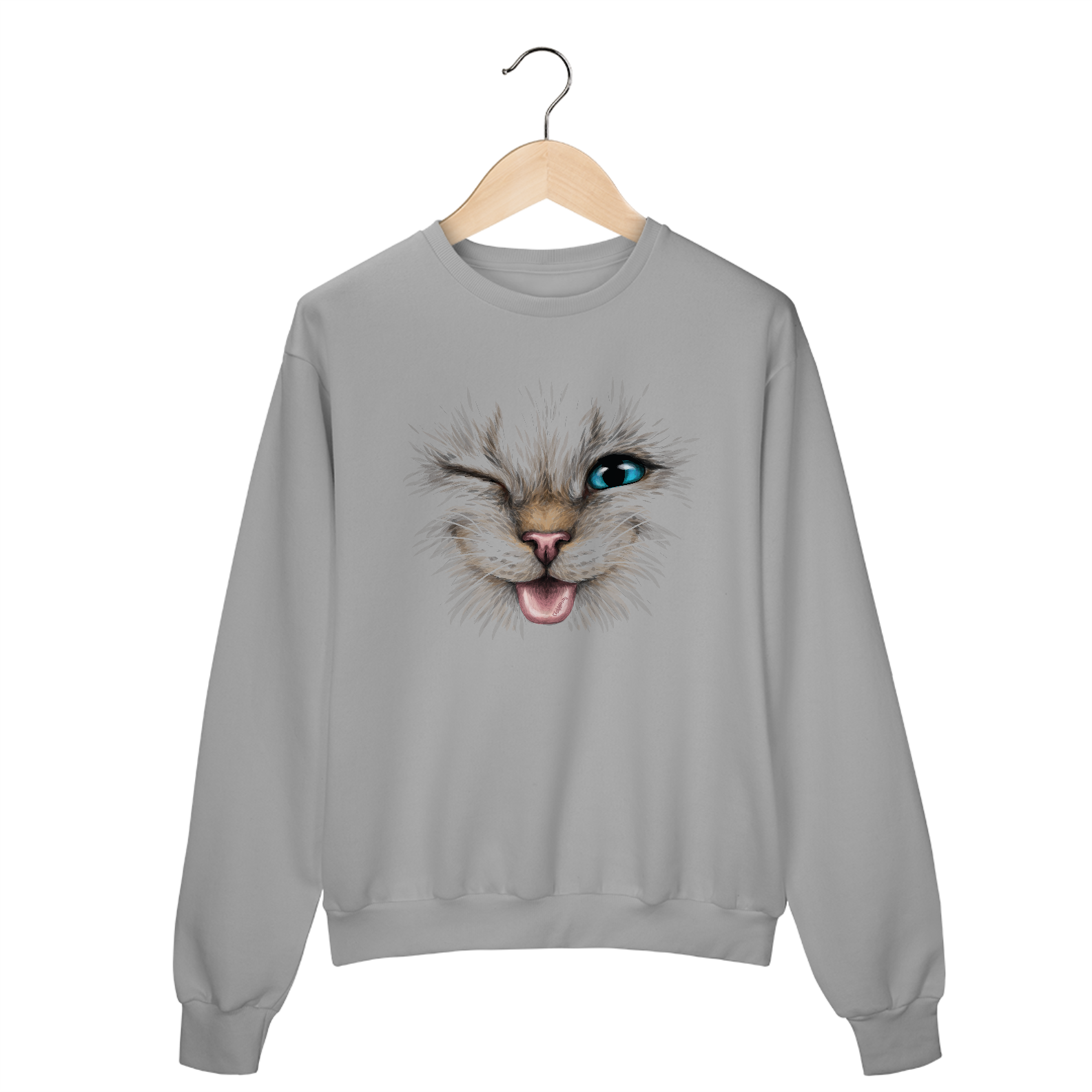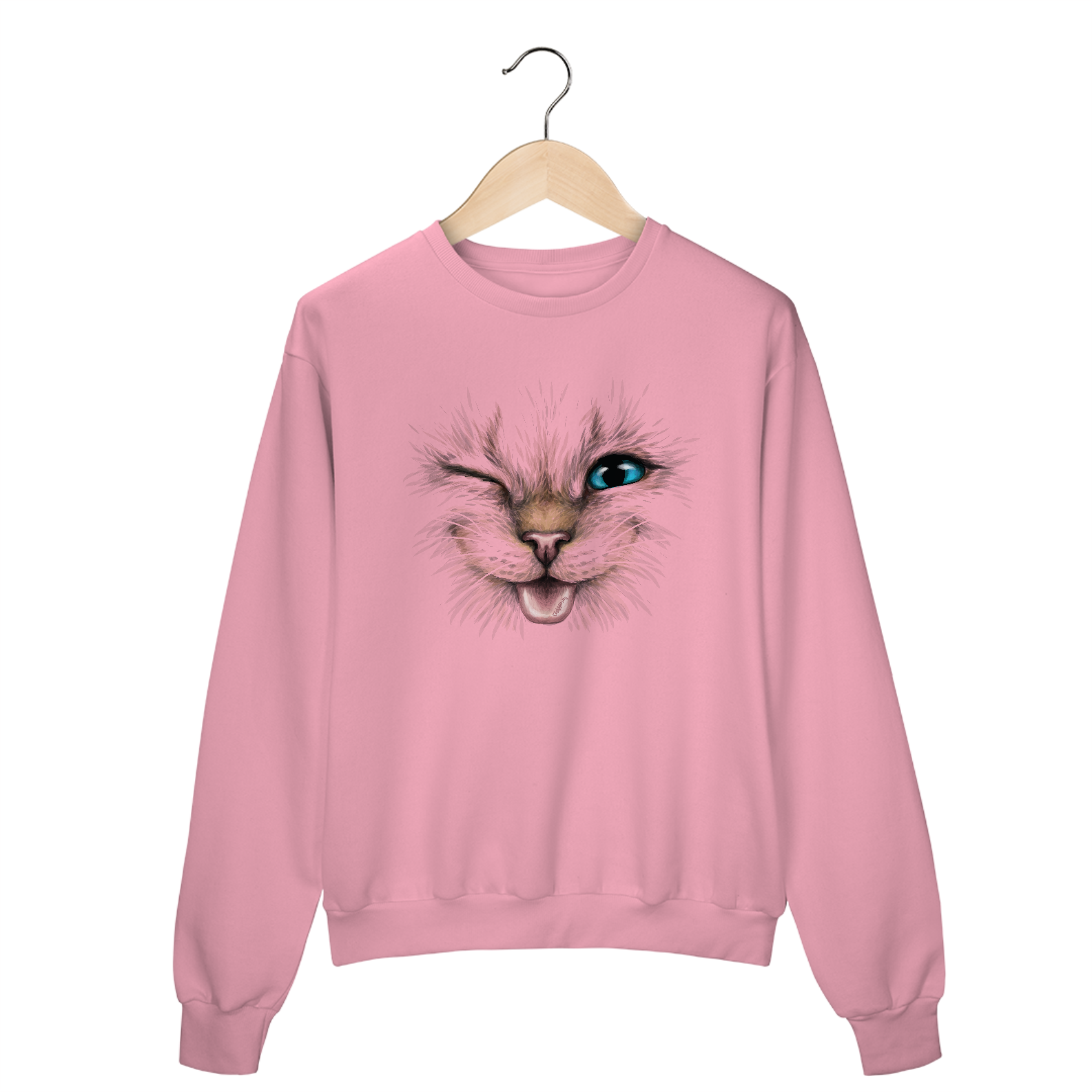 Estampa com um divertido gatinho piscando, cheio de charme!