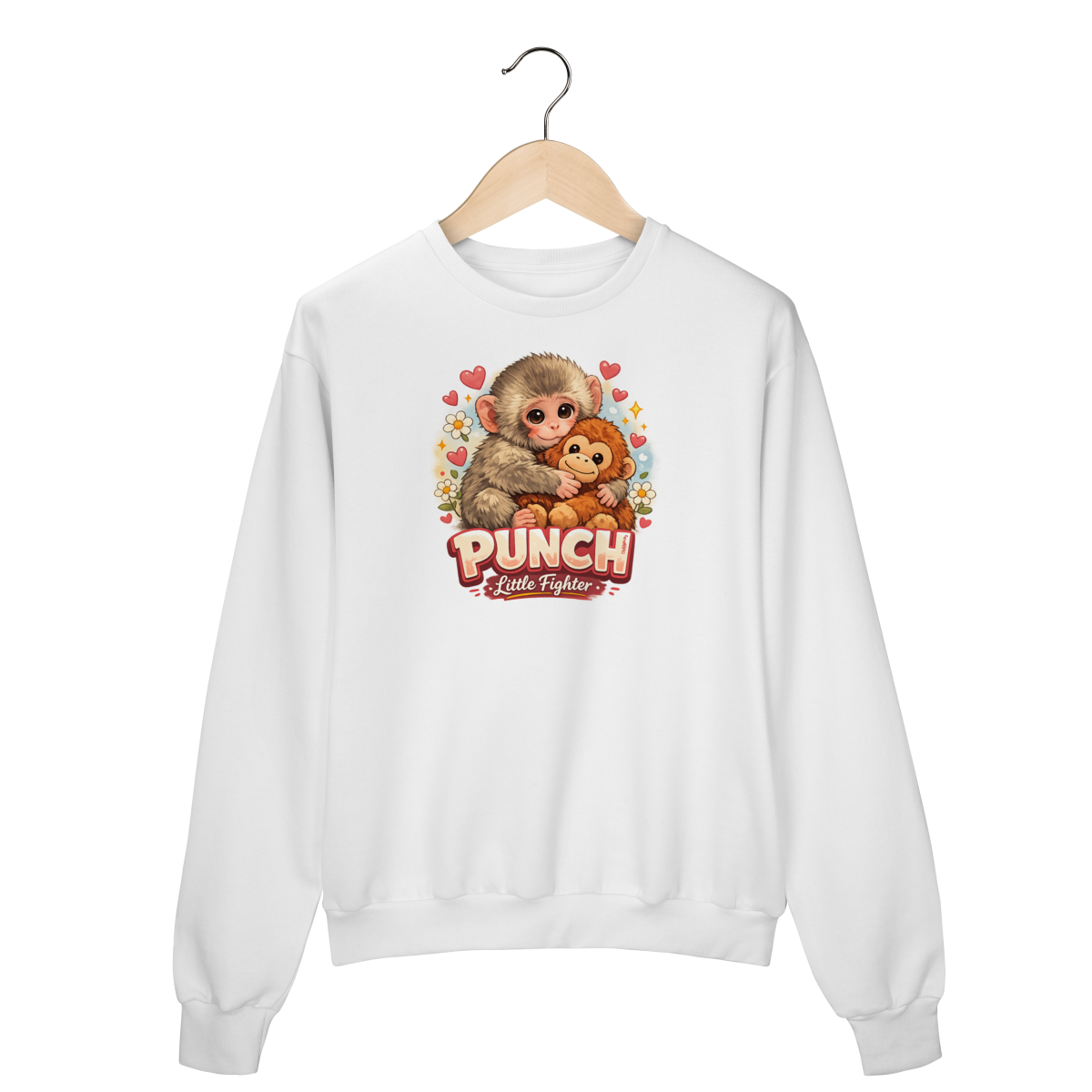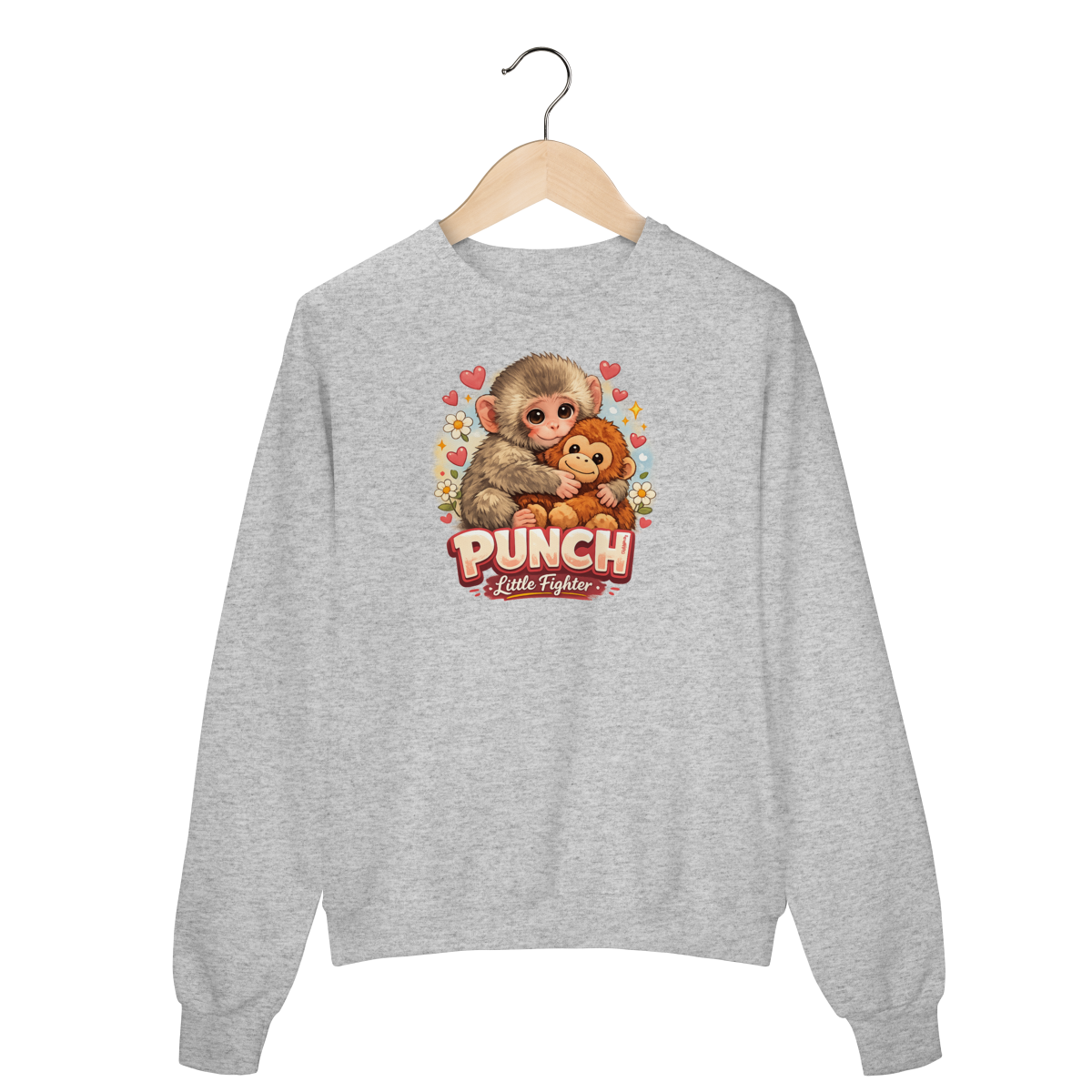 Blusão com estampa inspirada no macaquinho Punch, símbolo de fofura, carinho e superação.