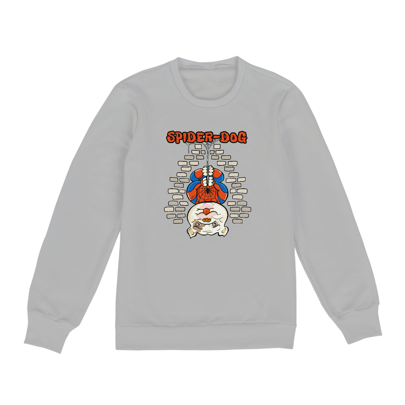 Criada pelo artista Claudio De Marco (@claudio_caricaturas), a estampa Spider-Dog foi desenhada a mão, digitalizada e colorida no computador.