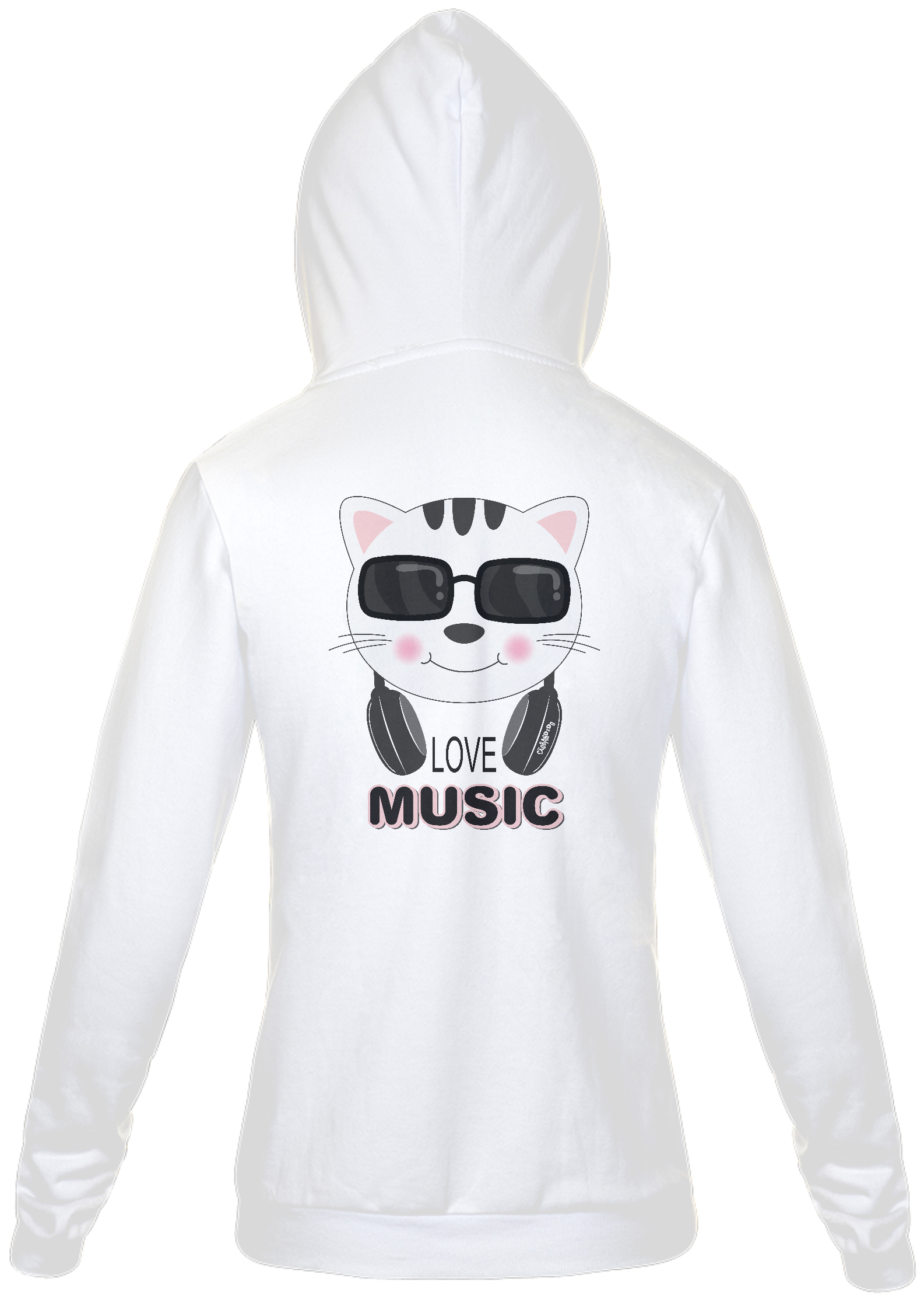 Lindo agasalho de moletom de gatinho com fone de ouvidos.